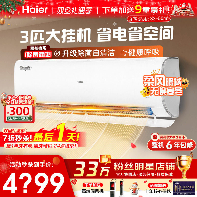 [雷神者】海尔空调2匹3匹大挂机家用一级变频冷暖用客厅KEA旗舰店