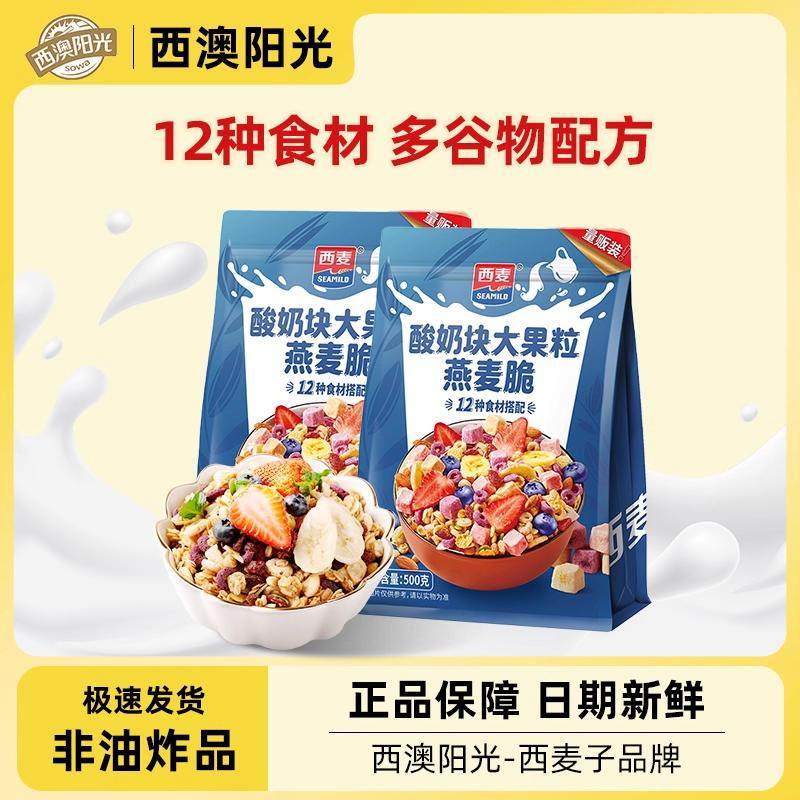 西麦酸奶块大果粒燕麦脆500g量贩装即食营养谷物早餐泡牛奶可干吃