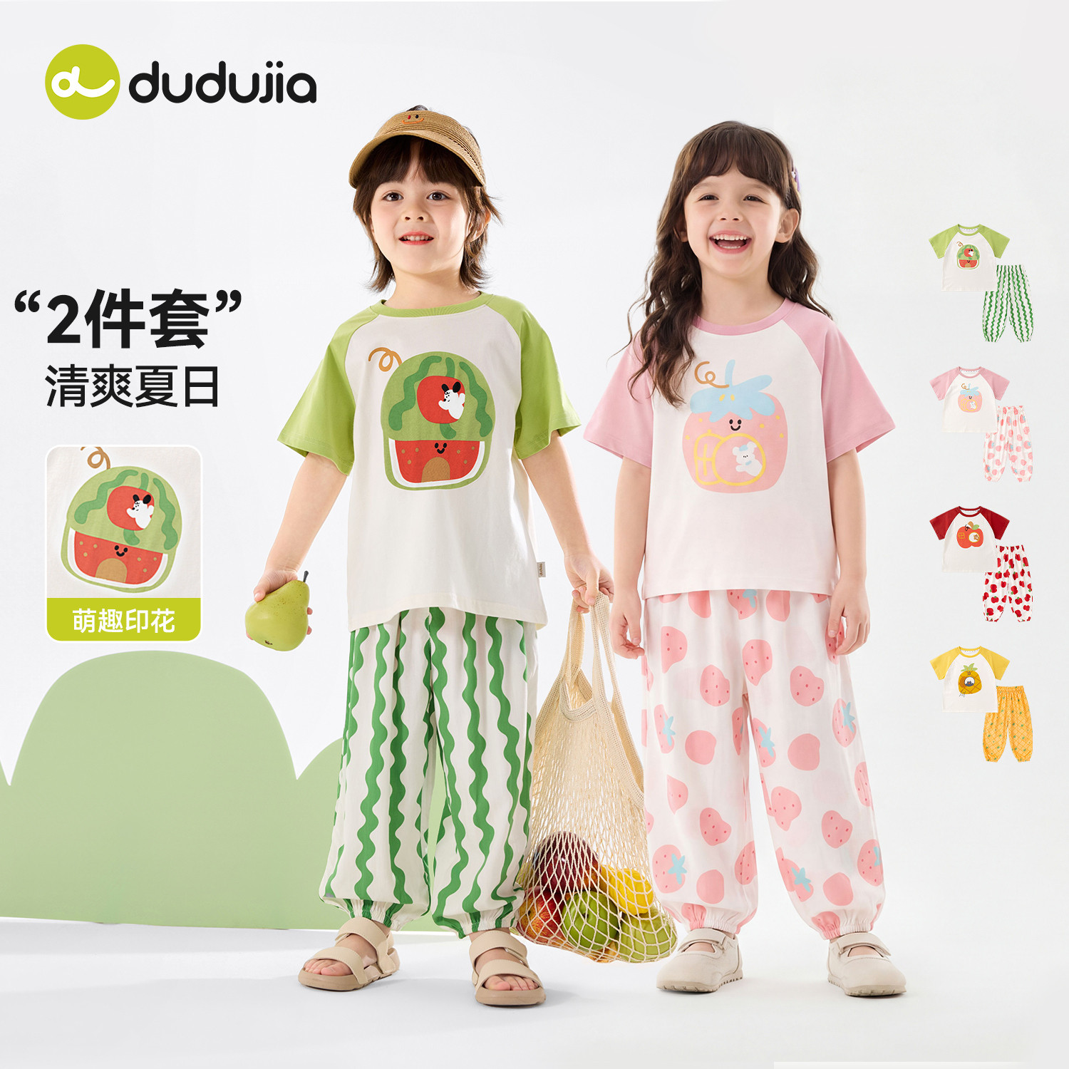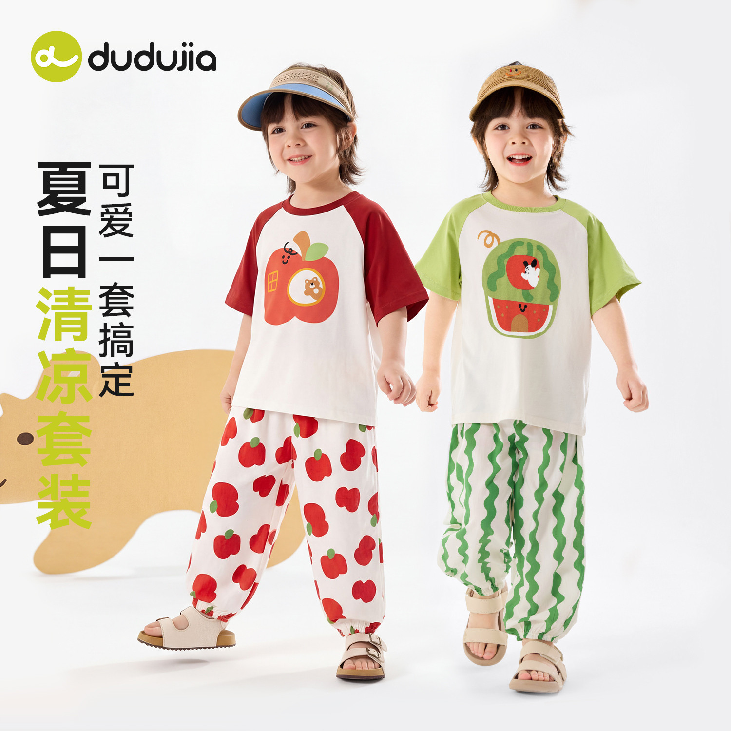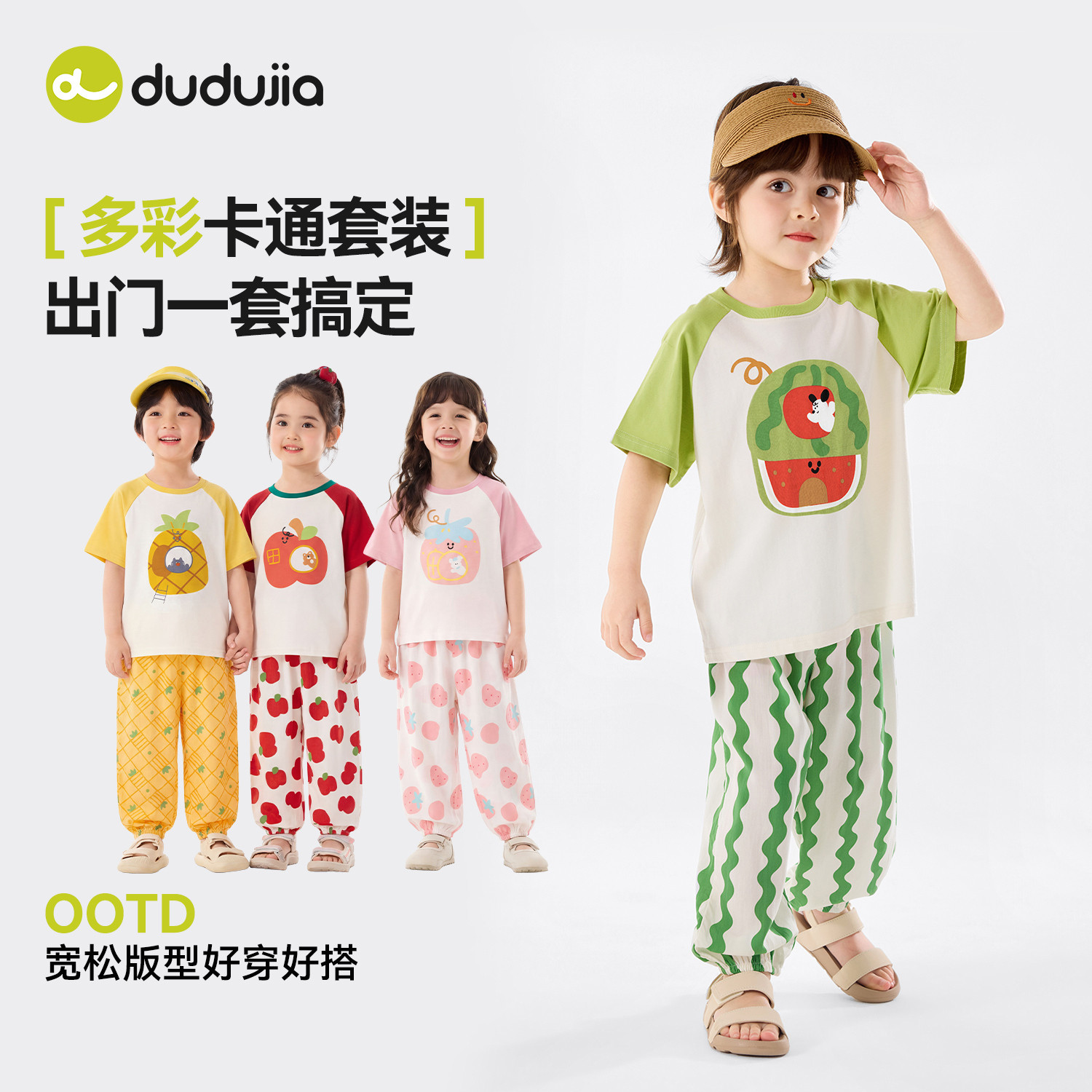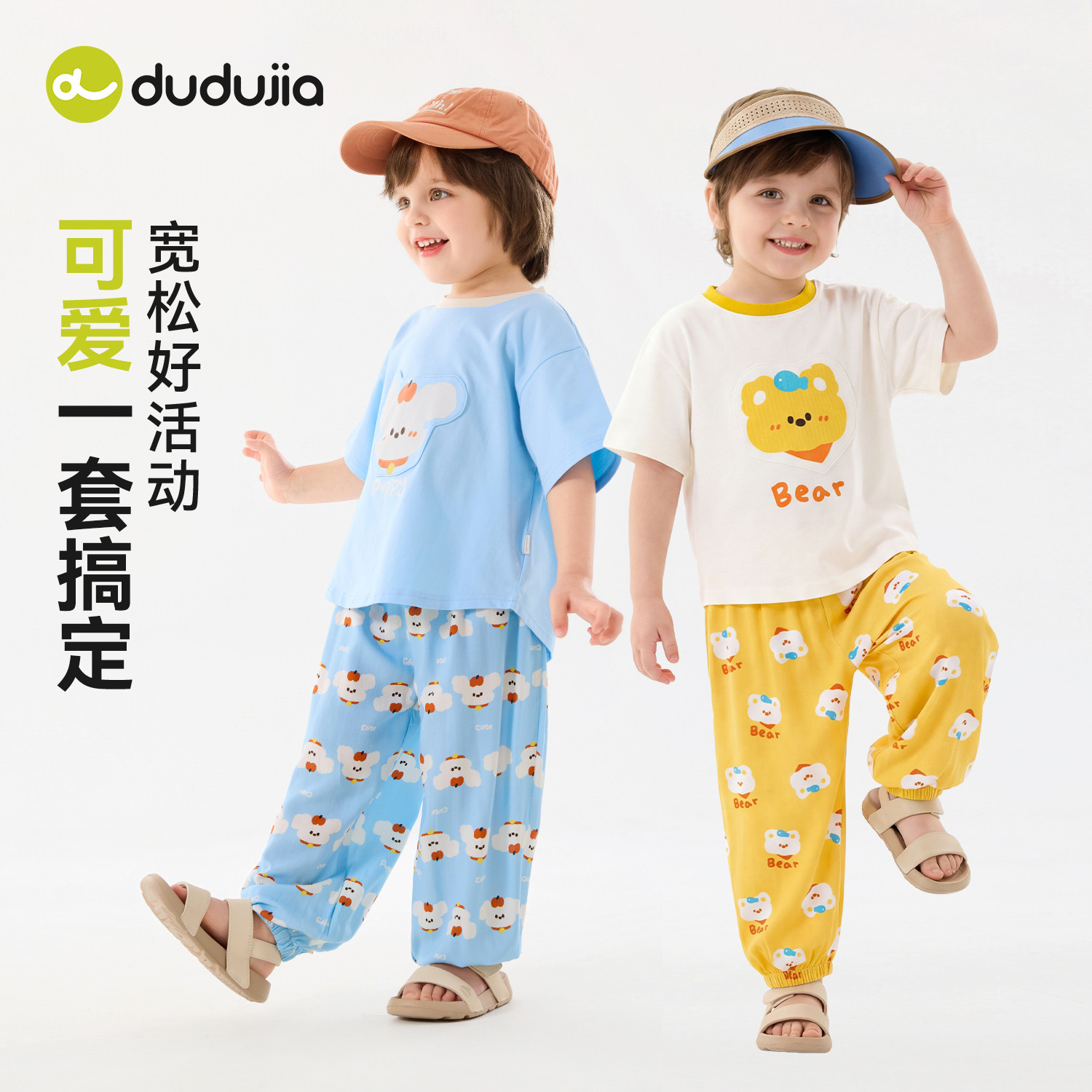 嘟嘟家儿童套装夏季男童短袖T恤女童薄款裤子宝宝夏款童装短t长裤