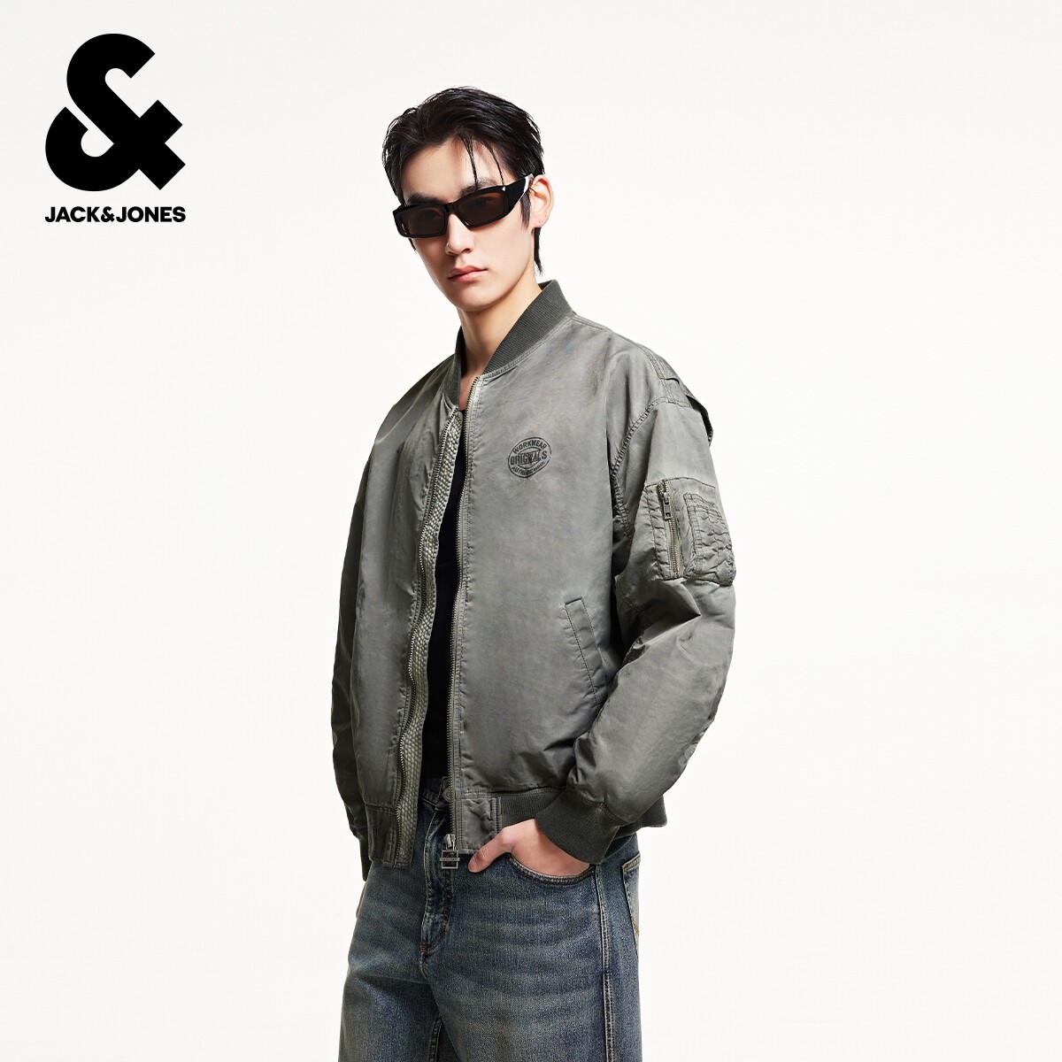 杰克琼斯男装夹克春秋季时尚宽松时尚字母印花做旧棒球领外套上衣