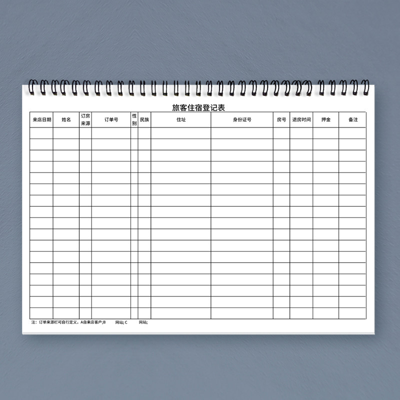 住宿登记本酒店宾馆旅客住宿登记簿登记表民宿临时旅馆未成人前台入住人员时间信息登记表A4加厚民宿宾馆