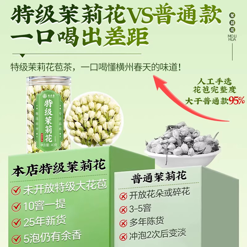 横县茉莉花茶叶25g-500g浓香型特绿茶级干花官方旗舰店泡水茉莉茶