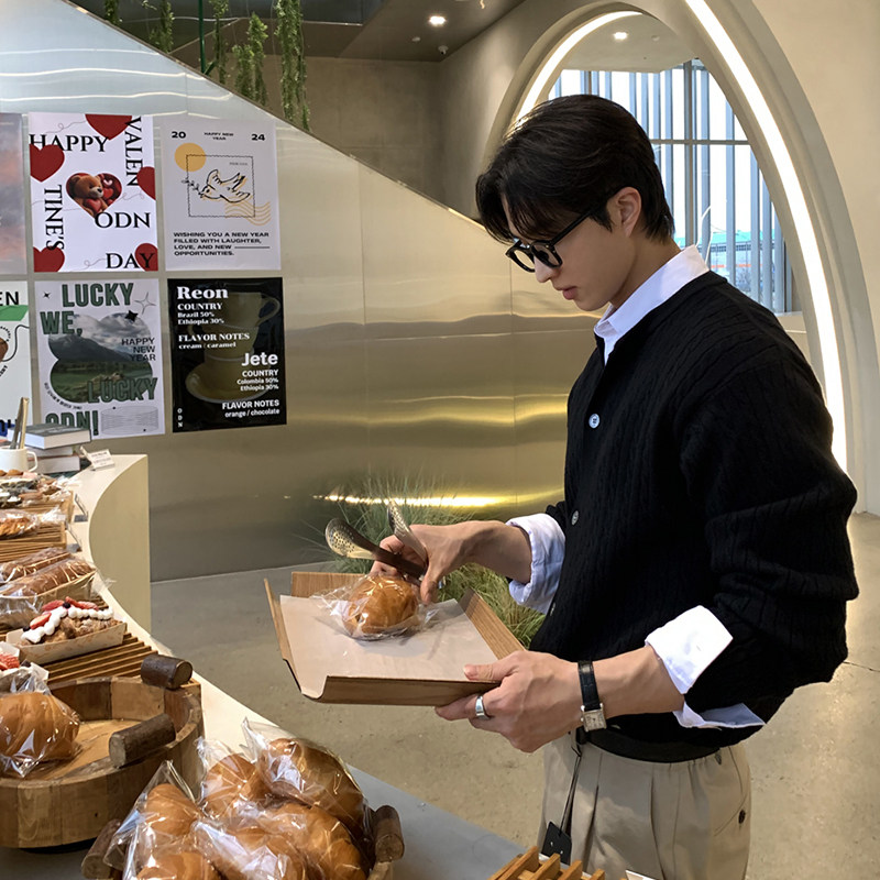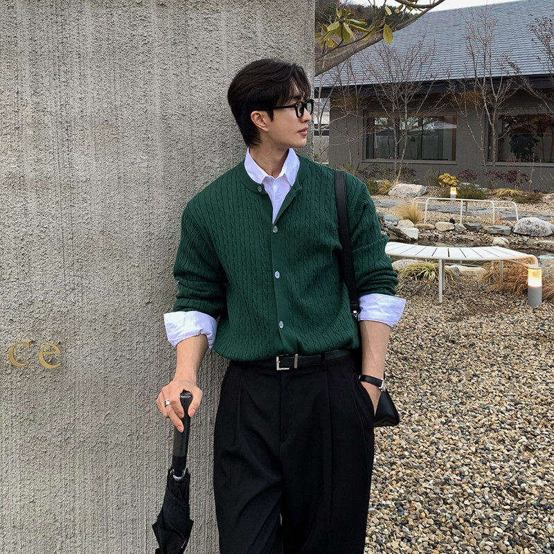 碧舍韩系男士针织开衫春季新款百搭小众设计麻花纹高端毛衣休闲潮