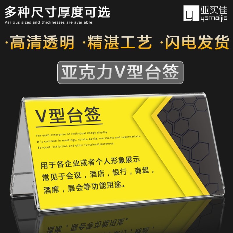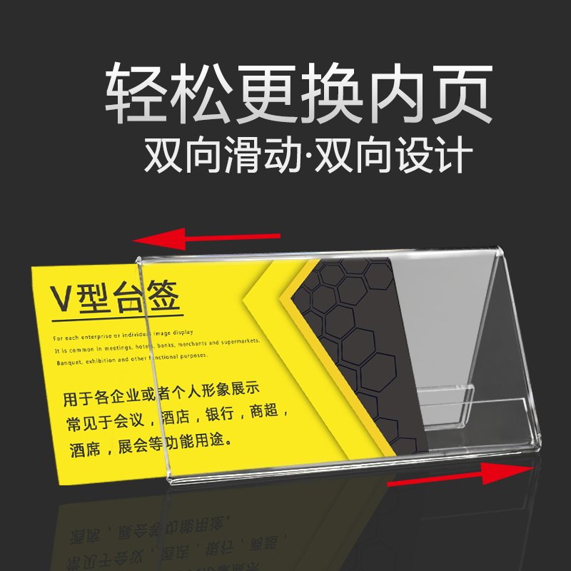 v型亚克力会议桌牌三角台卡会议牌双面透明嘉宾牌席卡桌签牌桌面座位牌台签展示牌席卡牌名字台牌立牌 姓名牌