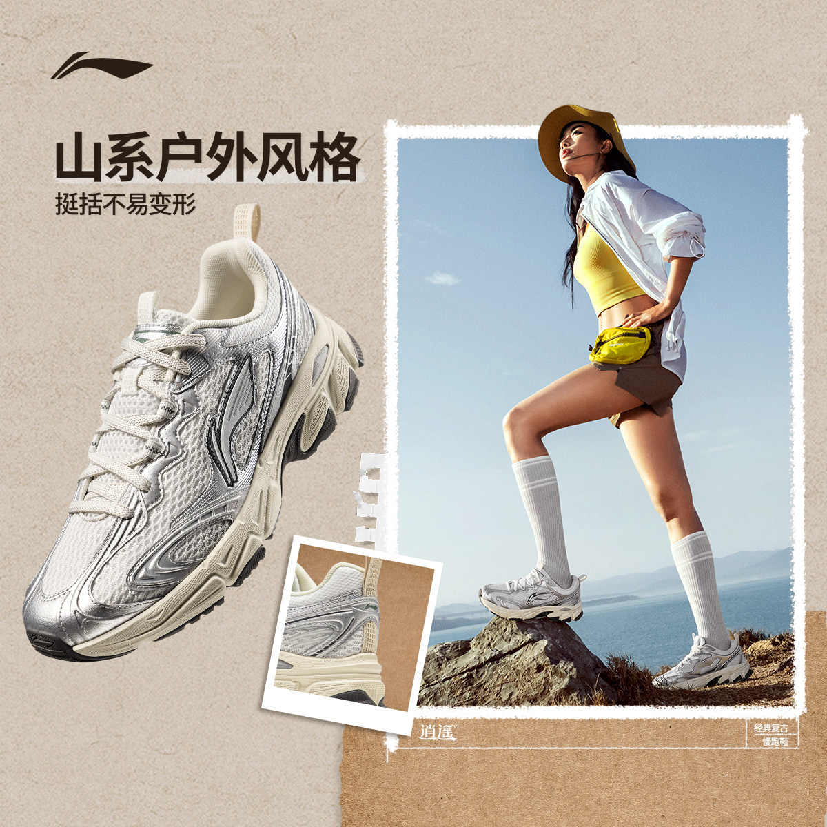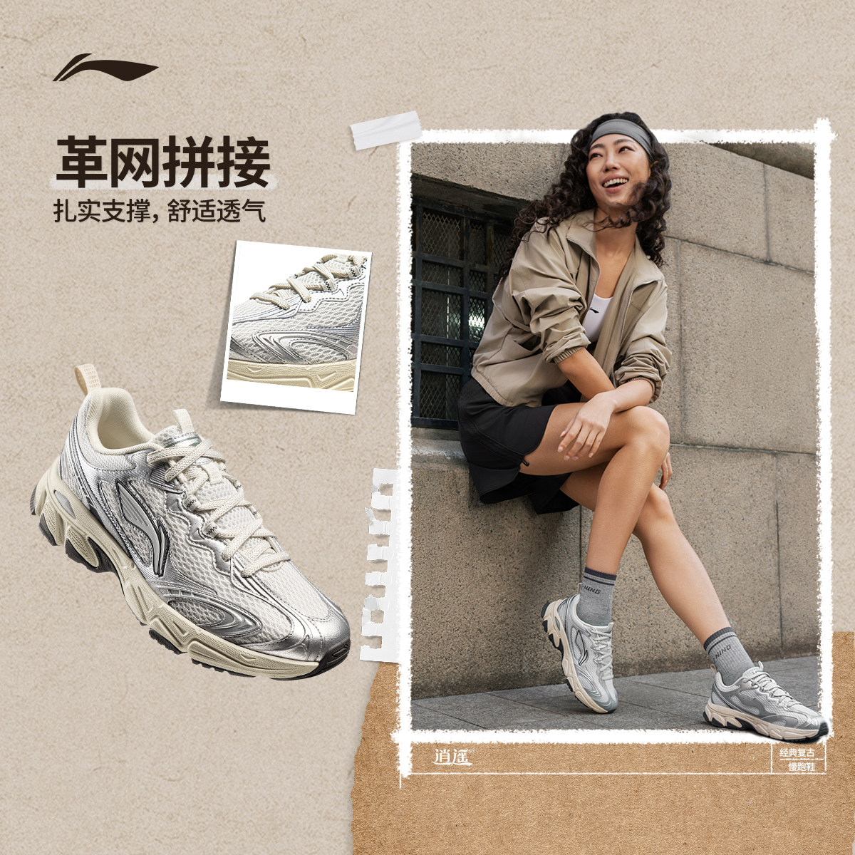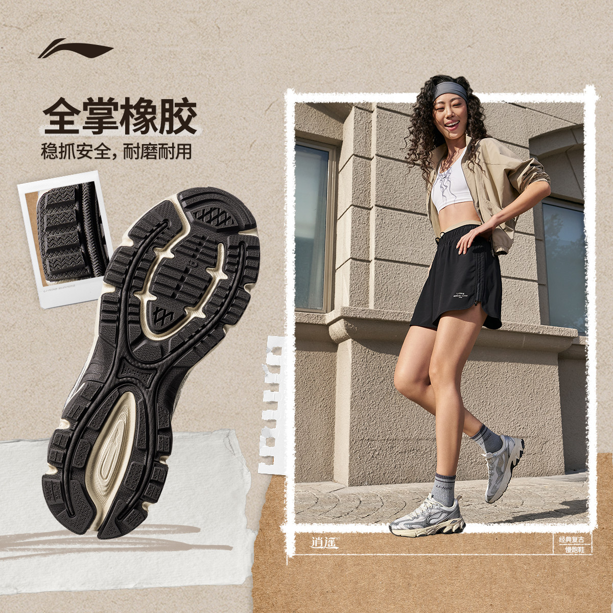 李宁逍遥v3丨跑步鞋女鞋2026新款轻便复古厚底增高百搭休闲运动鞋