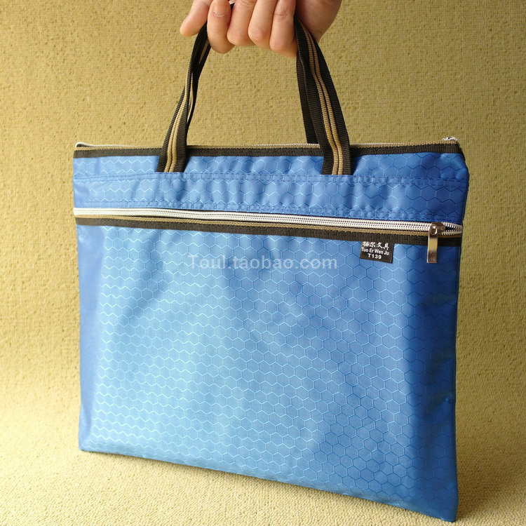 A4立体双层帆布拉链资料袋牛津布会议收纳文件档案袋公文包手提袋