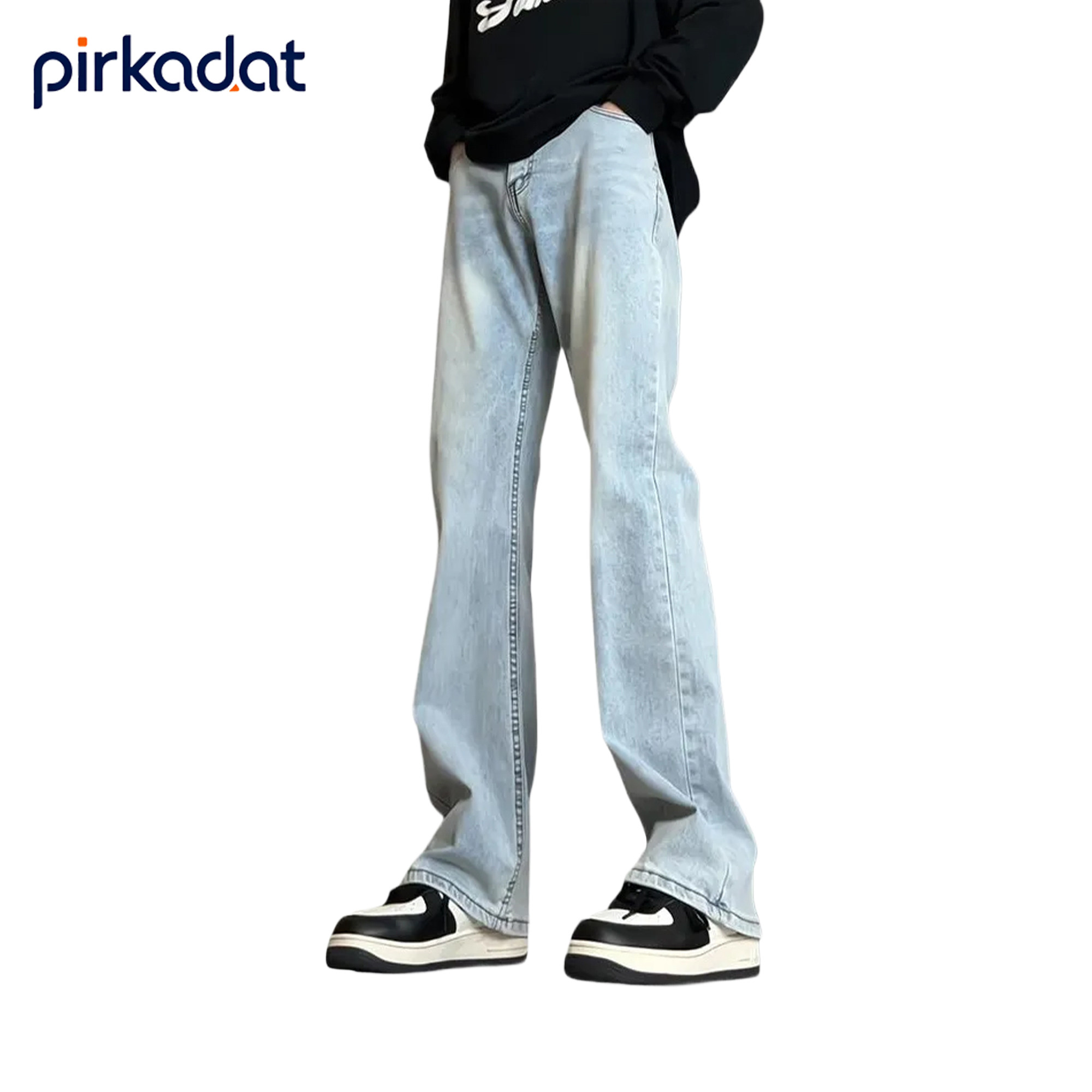 PIRKADAT美式复古微喇牛仔裤男水洗做旧高街长裤