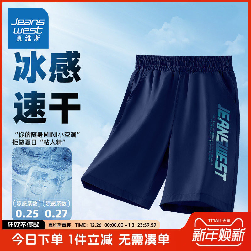 真维斯童装男童短裤夏季儿童薄款冰丝运动裤子男孩五分裤速干中裤
