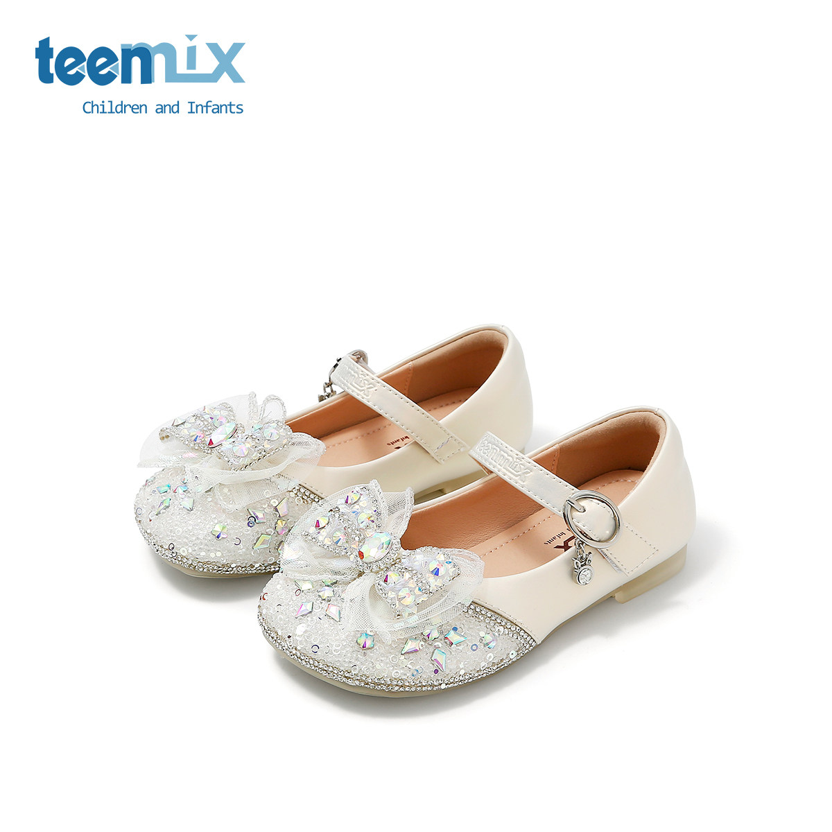 teenmix天美意2025春秋季新款女童公主鞋儿童皮鞋水晶鞋软底单鞋