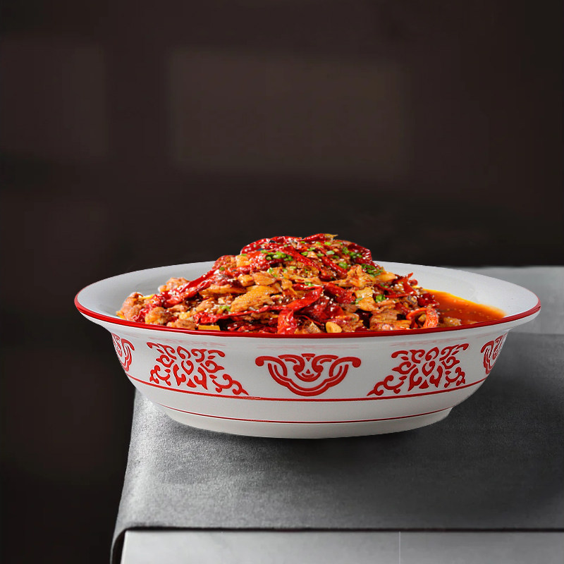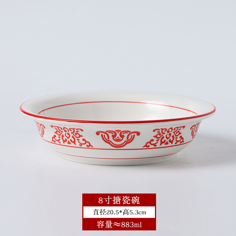 中式湘菜馆餐具汤盆饭店农家乐菜盘江西小炒碗盘陶瓷圆形炒菜盘子