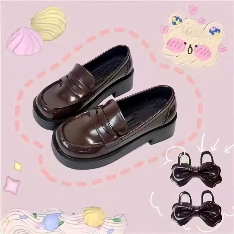 京泽春季原创jk制服鞋高跟小皮鞋中跟秋季方头粗跟不累脚棕色黑色
