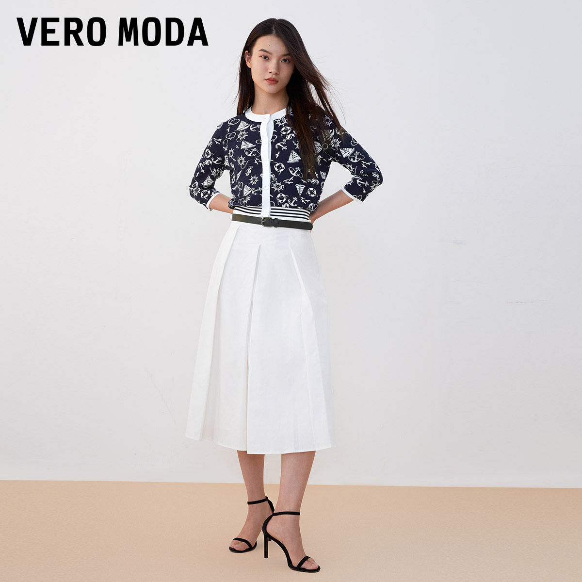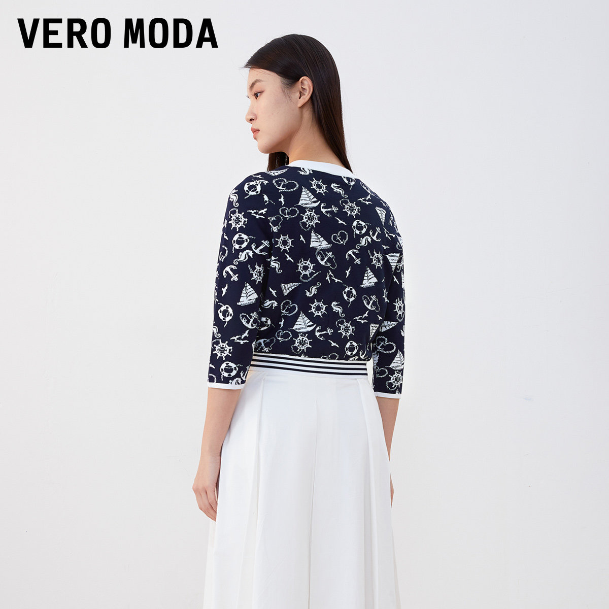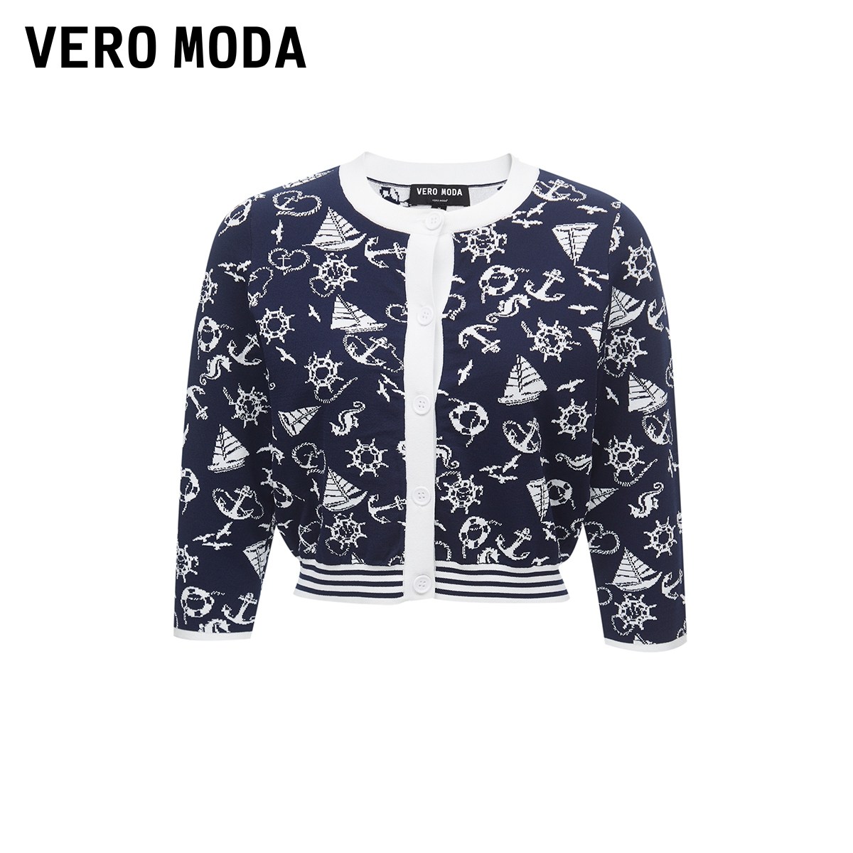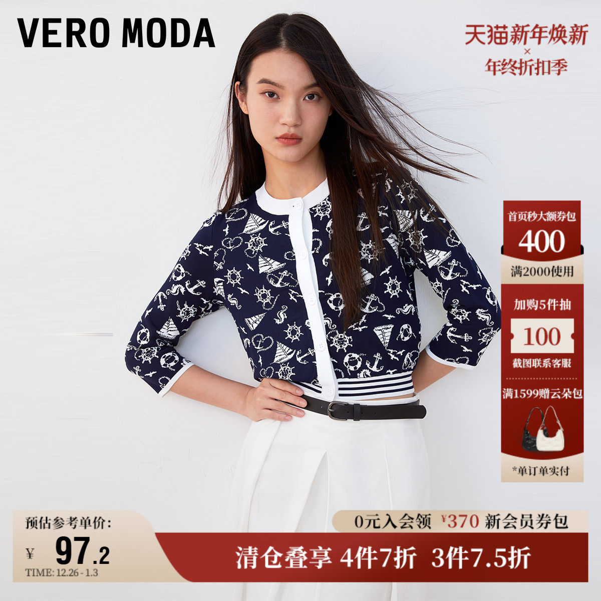 Vero Moda奥莱针织开衫女秋冬清仓圆领七分袖通勤海军风毛衣百搭
