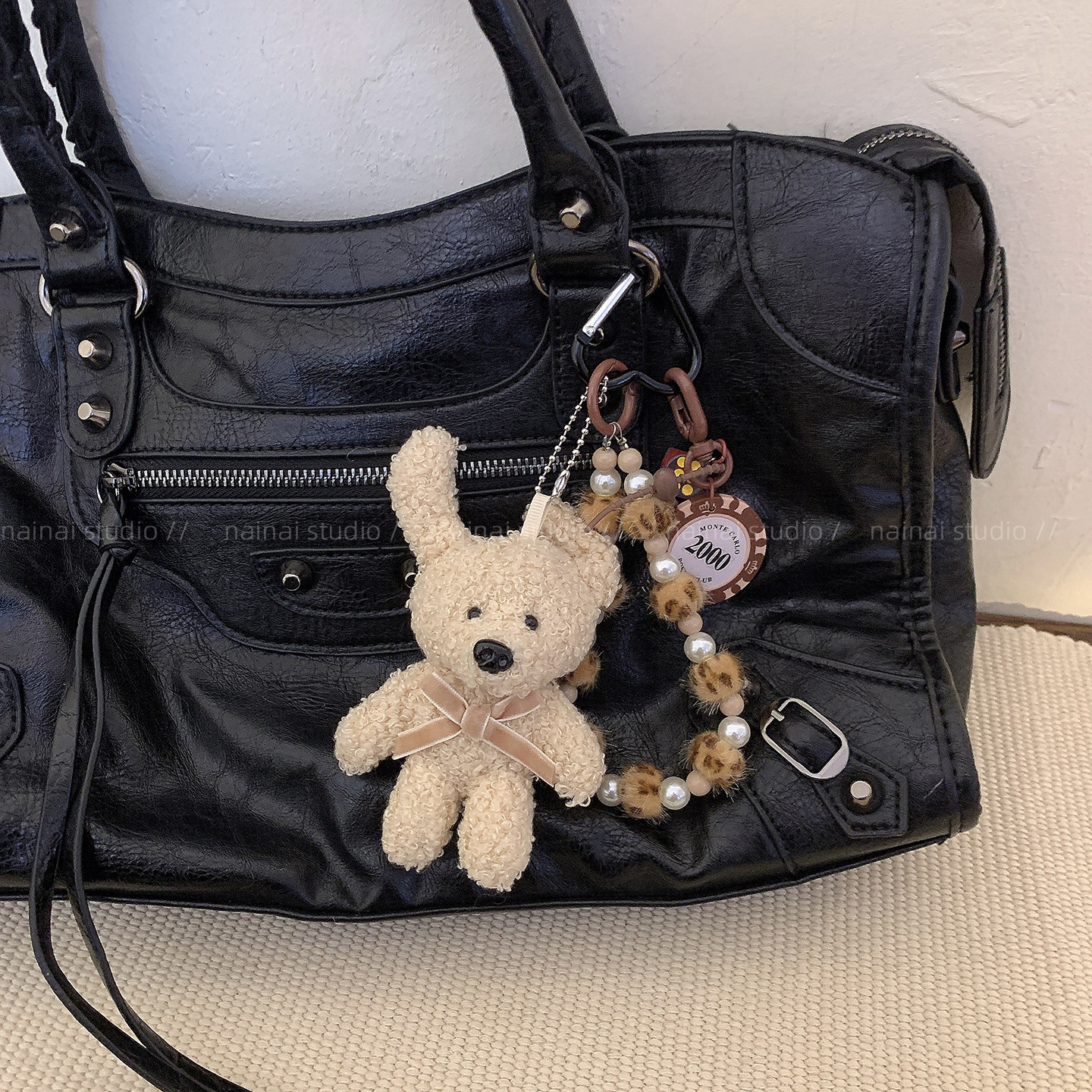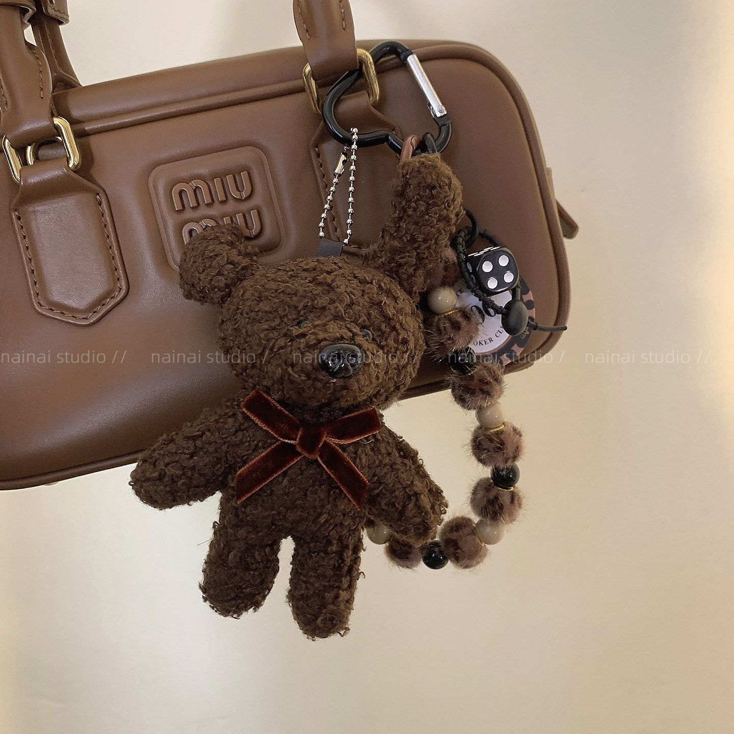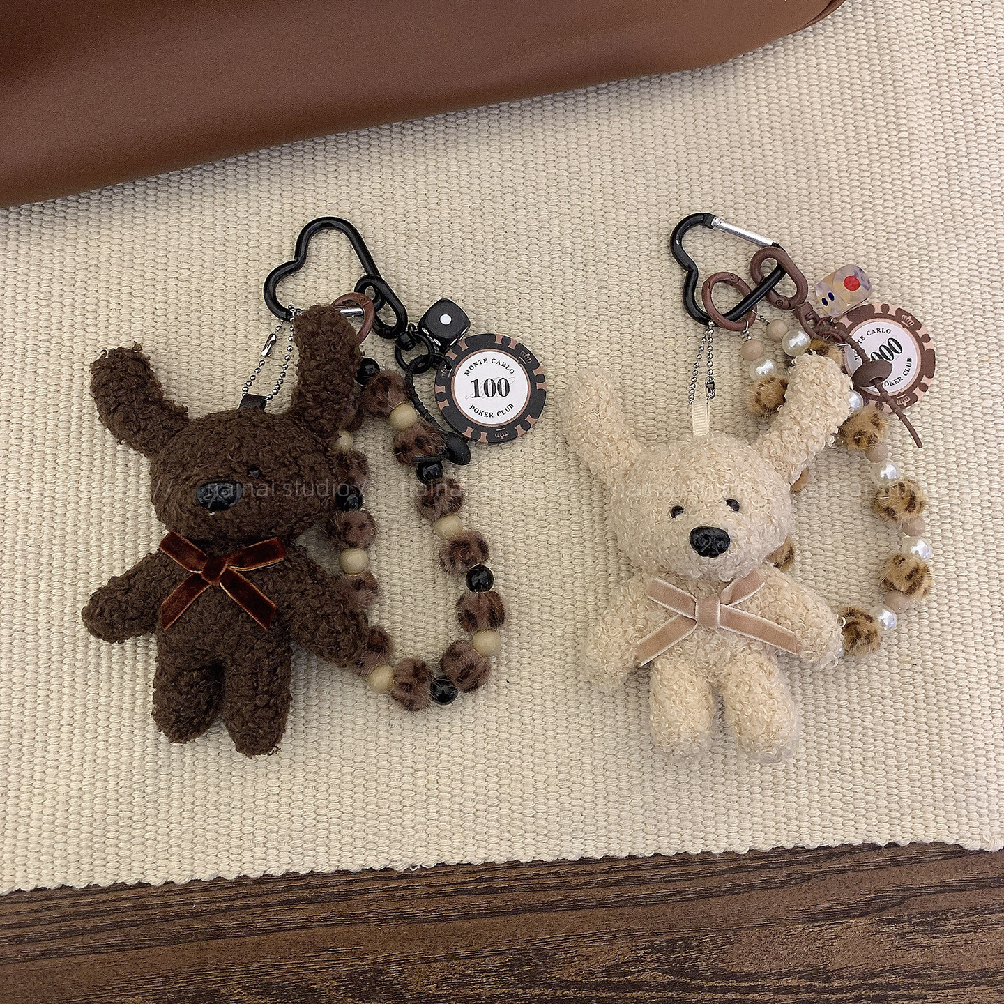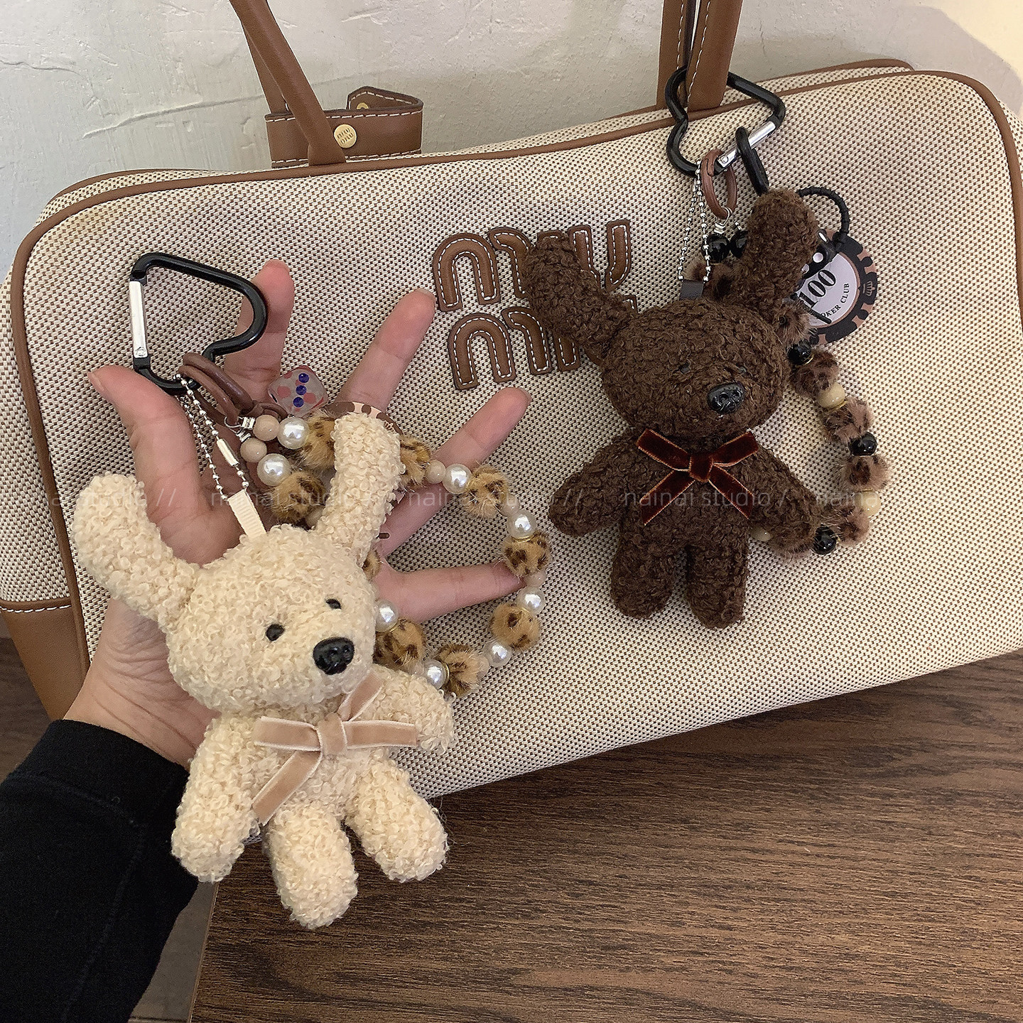 小兔子挂件~可爱毛绒玩偶公仔miu系风豹纹包包挂饰车钥匙扣配饰A