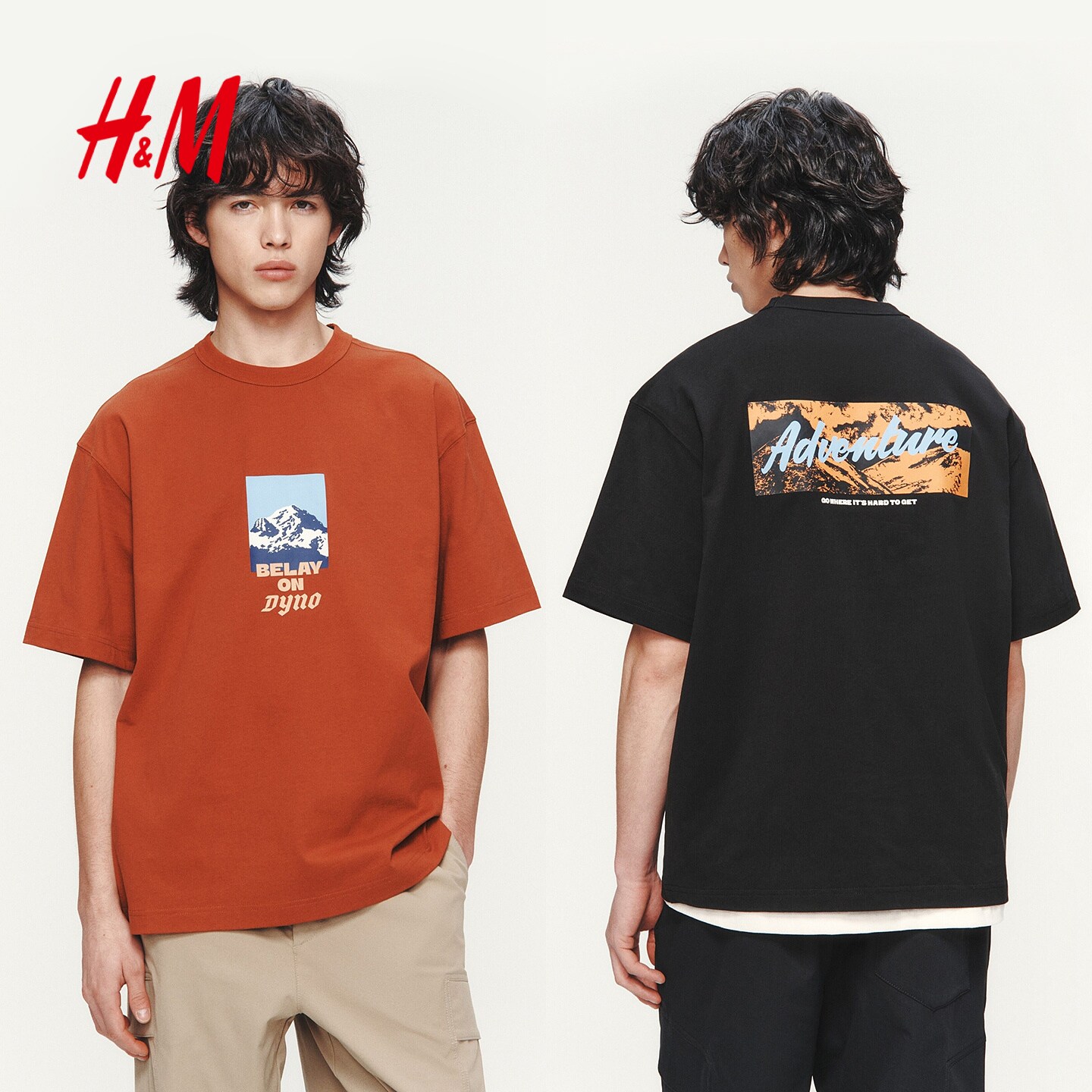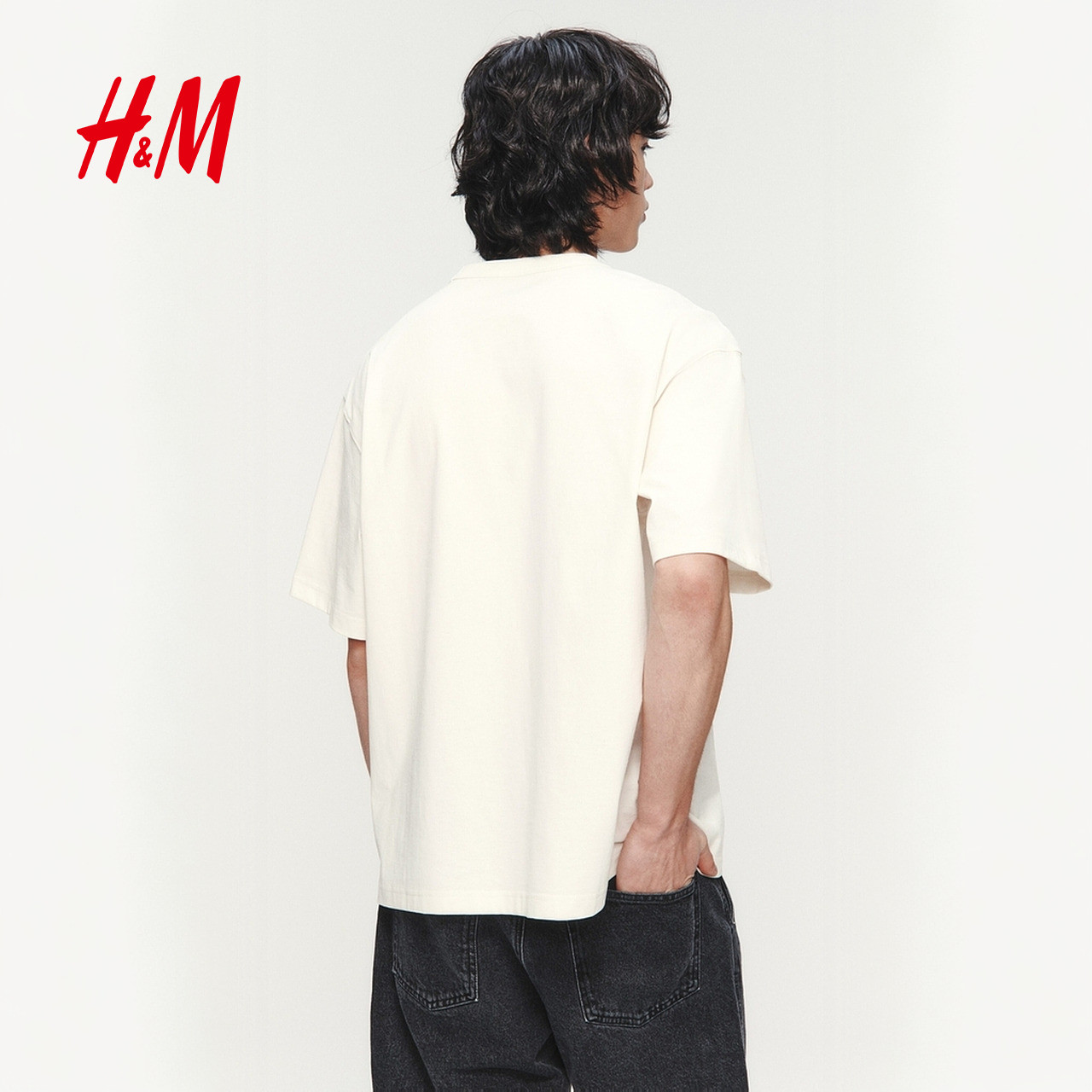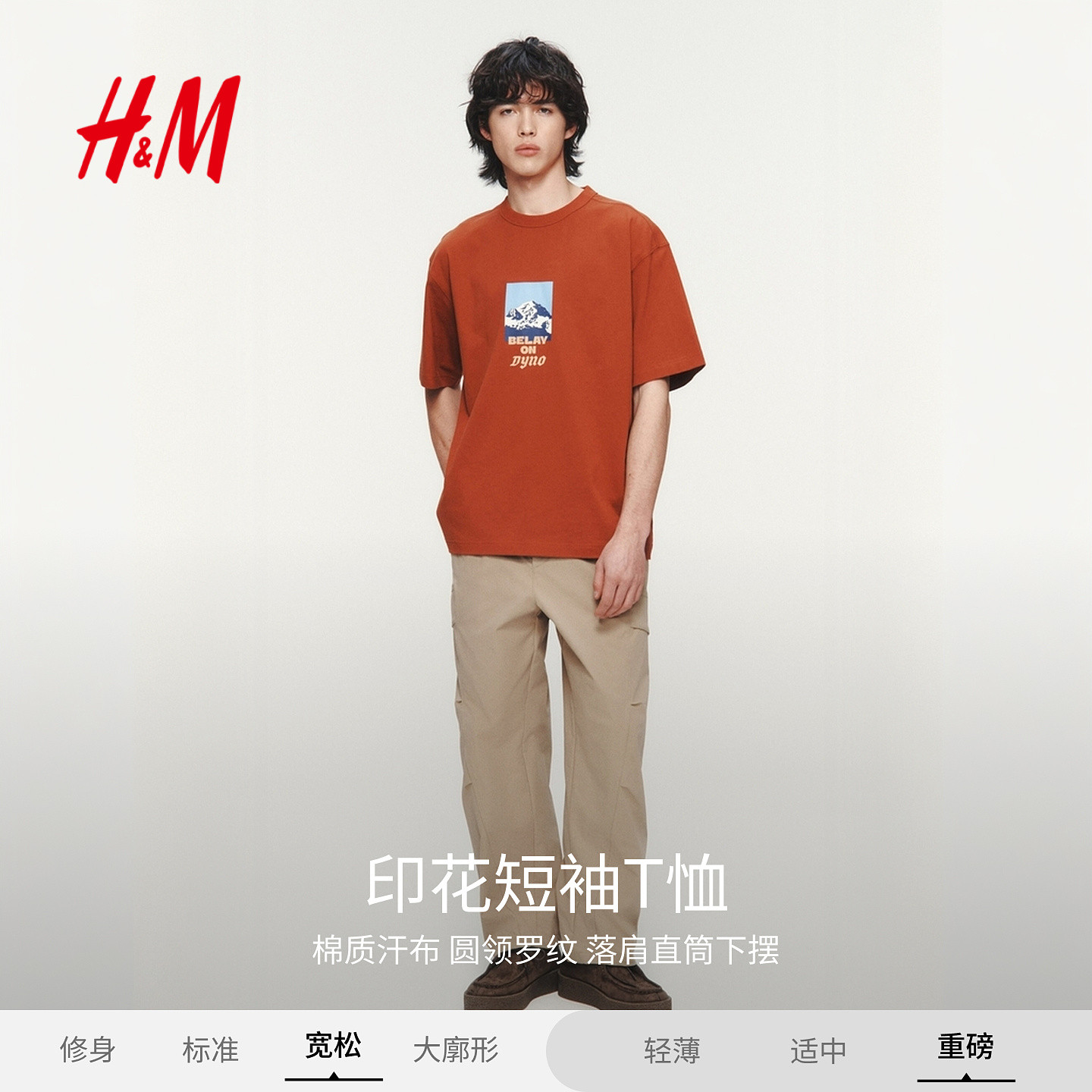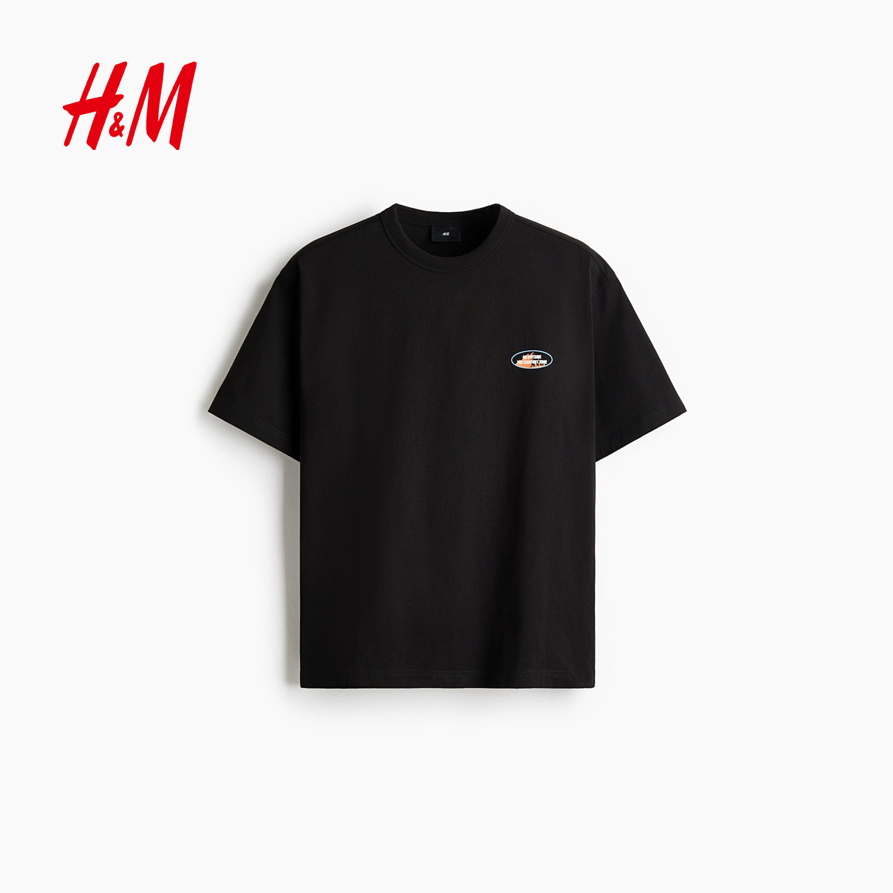 HM男装女装T恤2026春季新款宽松印花情侣装圆领短袖重磅1326431