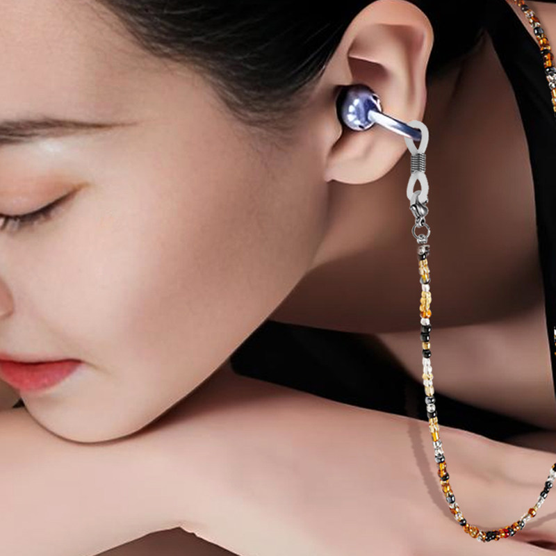玳瑁琥珀色无线蓝牙耳机防丢链耳夹式耳机防掉神器耳机防丢绳通用