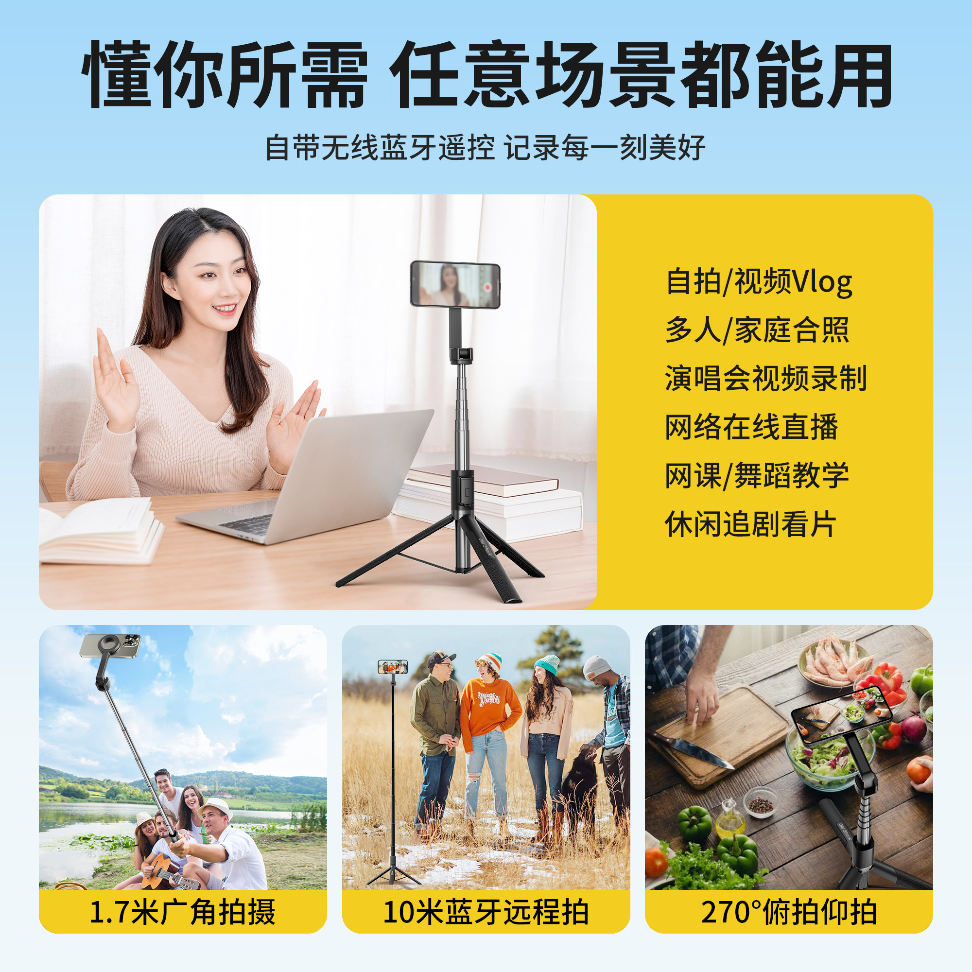 品胜2025新款自拍杆落地三脚架一体便携防抖手机拍照通用直播自拍神器360度旋转手持旅游vlog演唱会拍摄支架