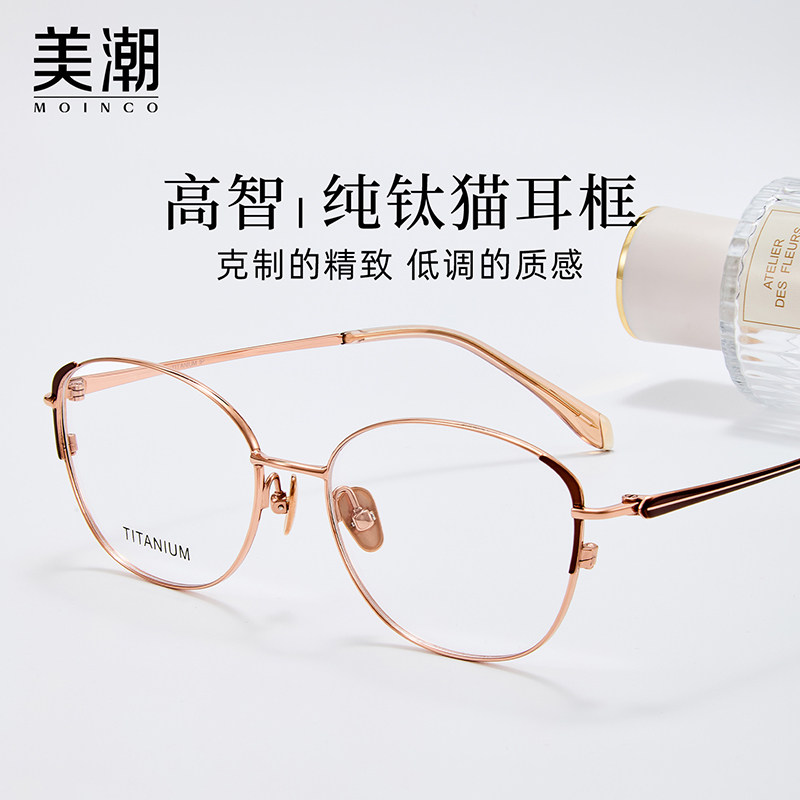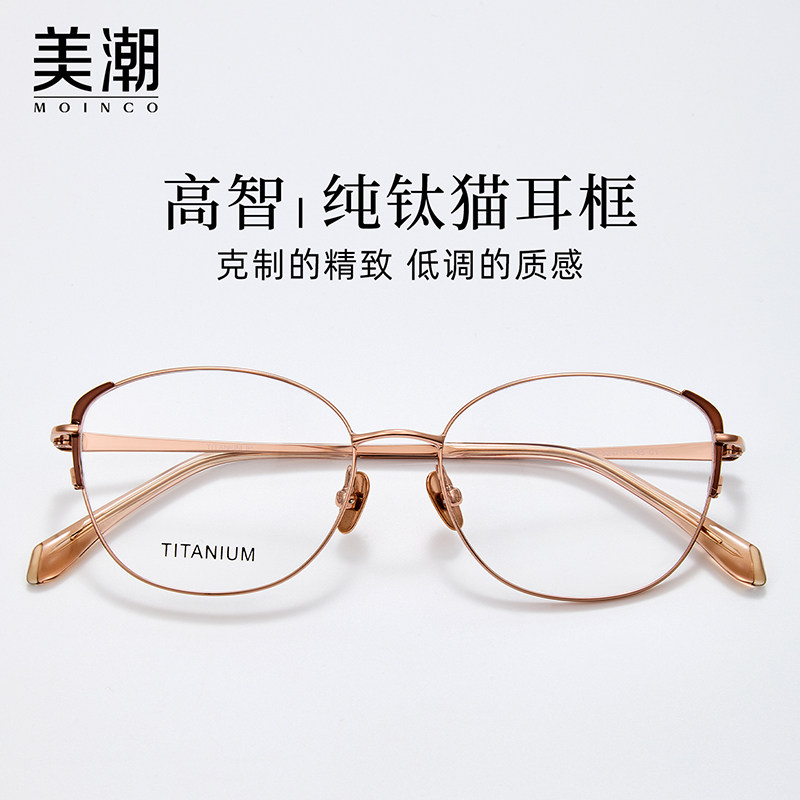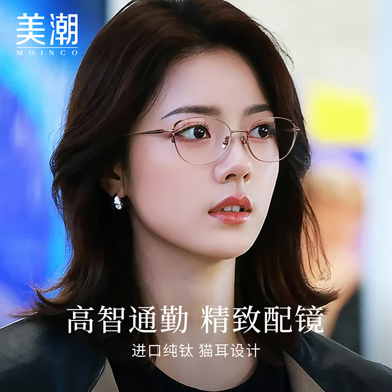 超轻纯钛猫耳框眼镜近视女度数可配高智感素颜方圆脸金丝细框镜架