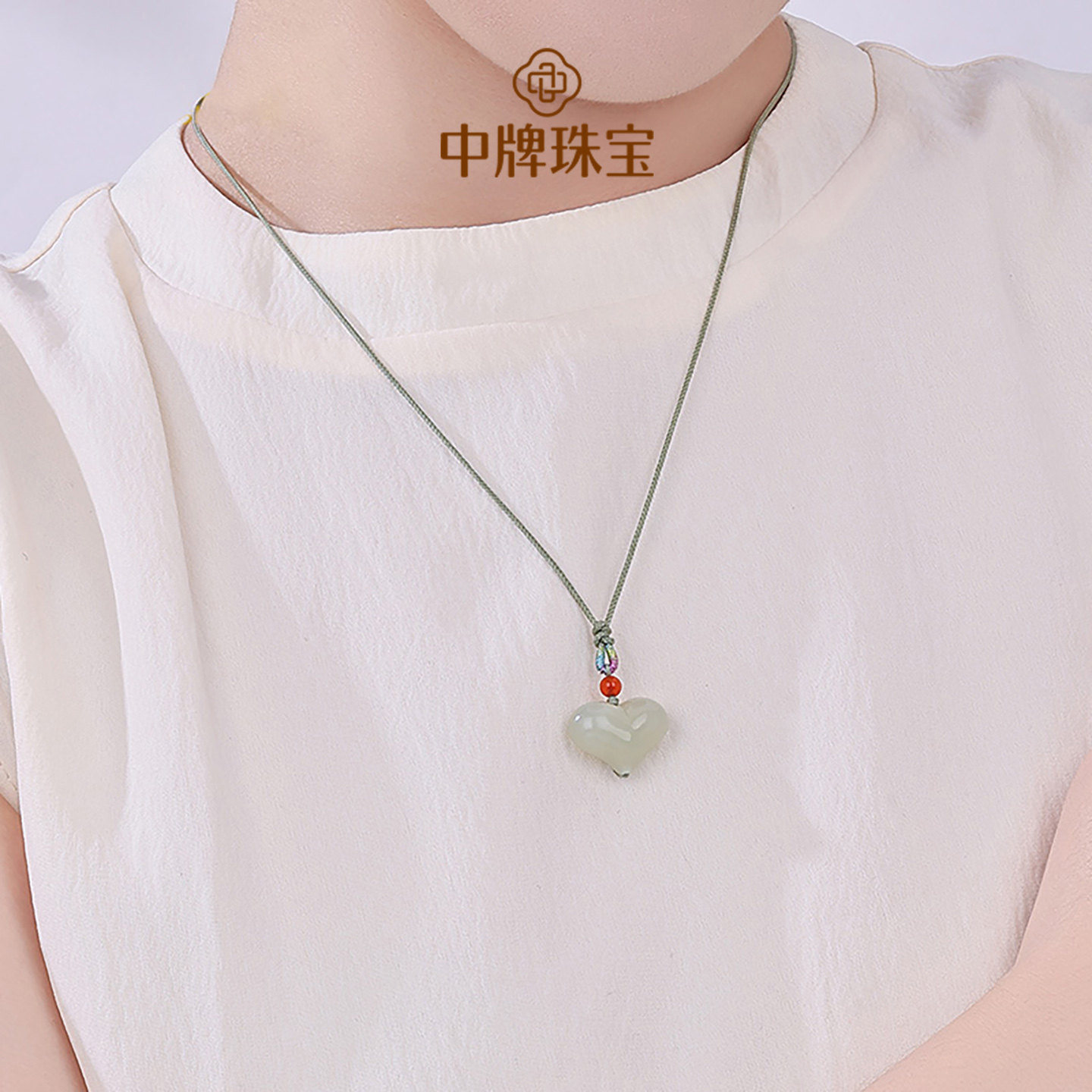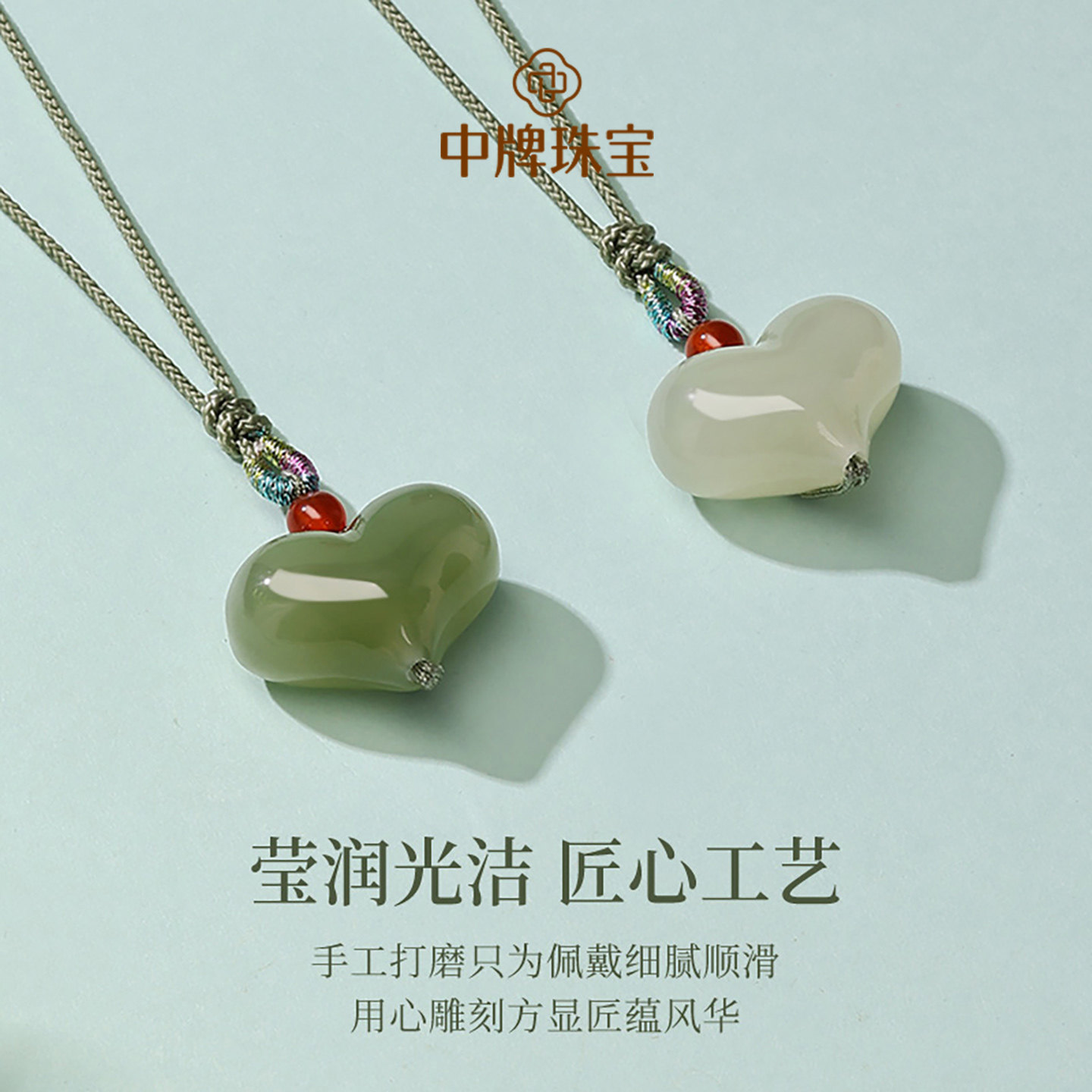 和田玉爱心吊坠天然玉石心形挂件桃心玉吊坠桃你喜欢项链新款女