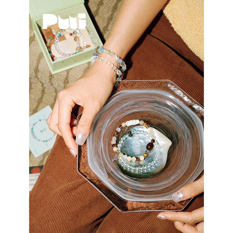 Puui原创新款天然水晶石手链双链ins风女高级感设计精致日常礼物