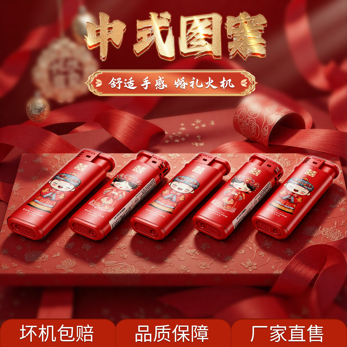 欧琦红色喜庆结婚一次性婚庆用品喜字婚礼高档打火机明火喜事印字