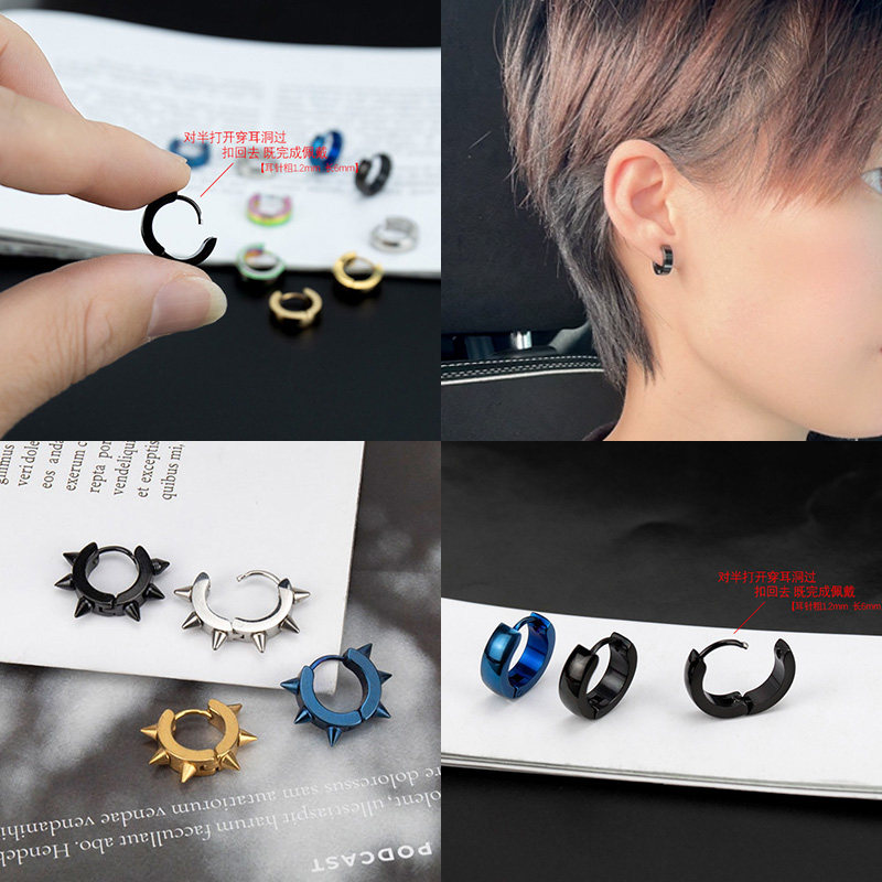 男女时尚耳环小众钛钢耳扣百搭嘻哈耳钉蹦迪耍酷耳圈圆形耳饰新款