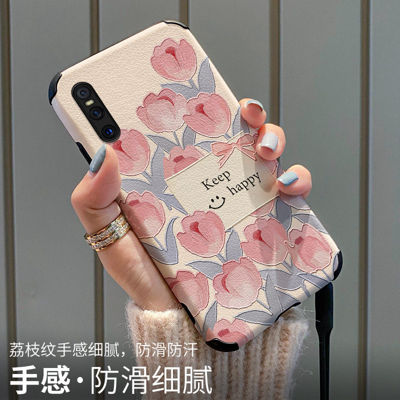 花丛卡片适用vivox30手机壳x27pro女款iqoo9新款x23幻彩版镜头iqoo7/5全包防摔小羊皮原创网红ins风个性创意
