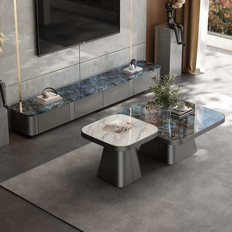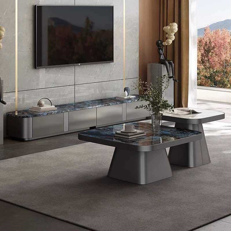 大理石茶几电视柜组合奢石微晶石客厅高端轻奢现代意式极简设计师