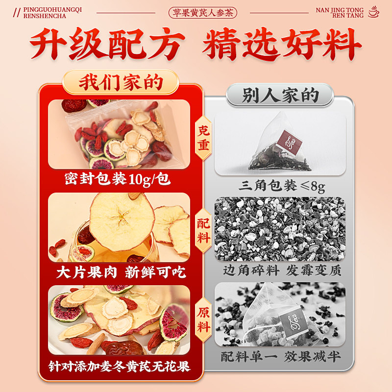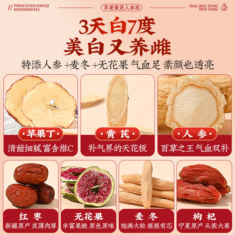 南京同仁堂苹果黄芪水麦冬红枣枸杞茶素颜水补气养血女人养生茶包