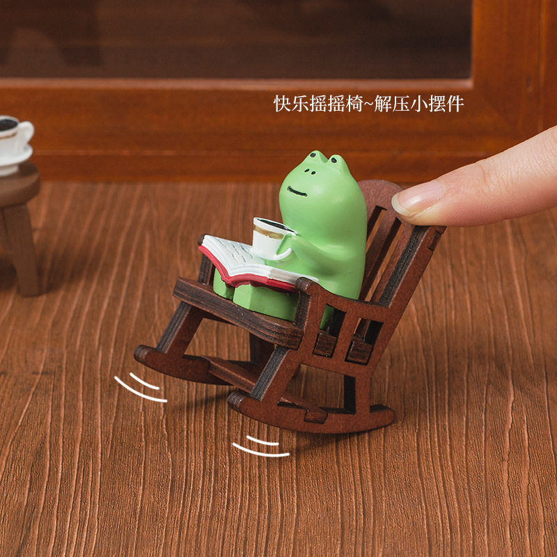 桌面摆件梅酒青蛙摇椅可爱装饰品治愈解压公仔拍照系和风旅行猫咪