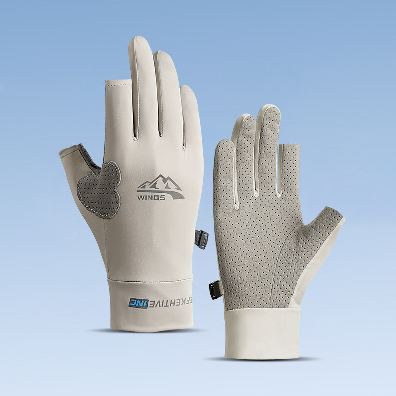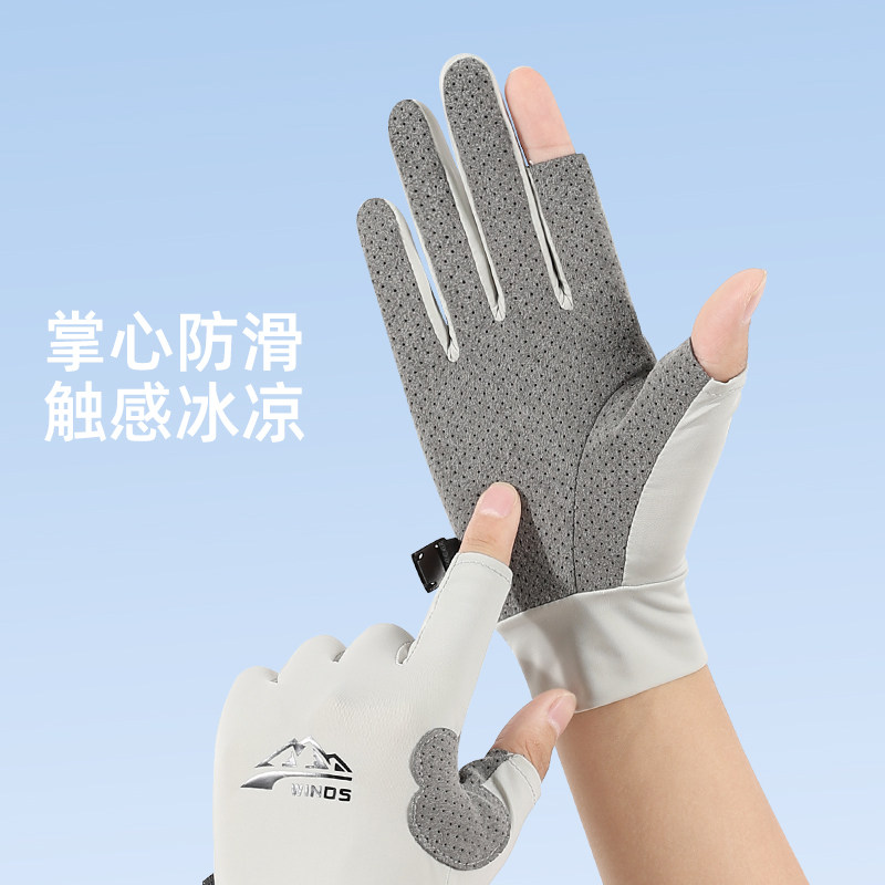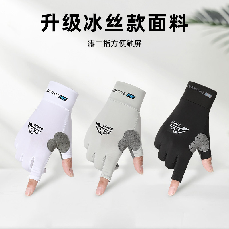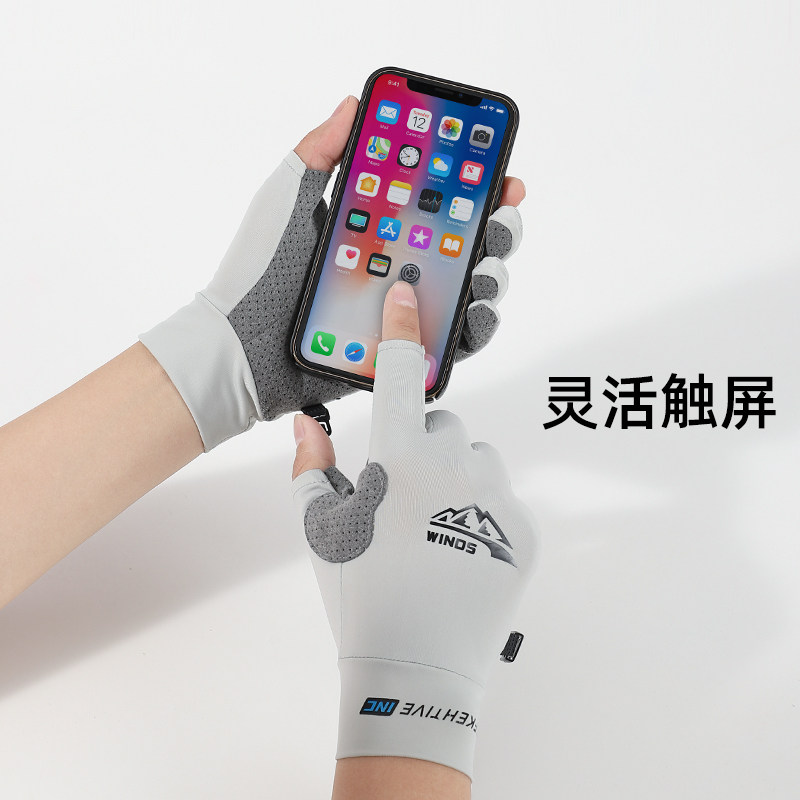 防晒手套男士夏季户外骑车防滑手套女钓鱼登山触屏露指薄款透气H