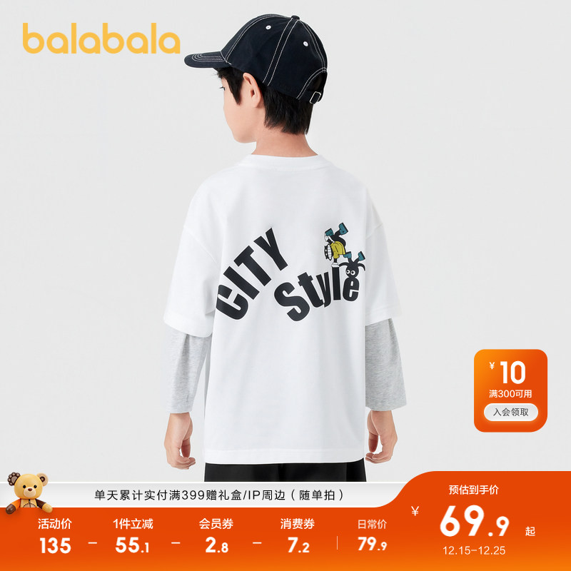 巴拉巴拉童装儿童长袖t恤男童女童2025春夏装假两件t休闲百搭上衣