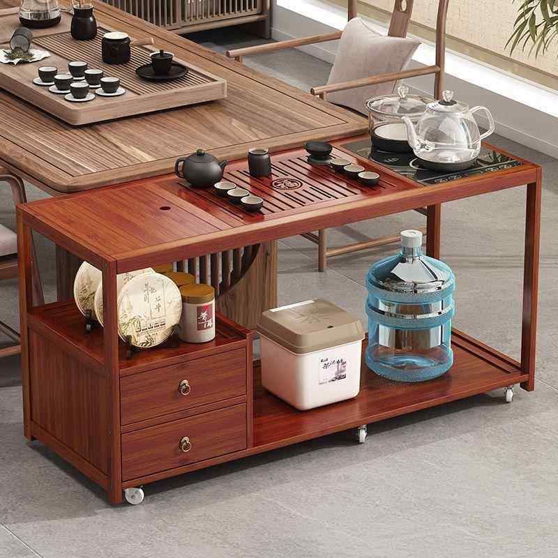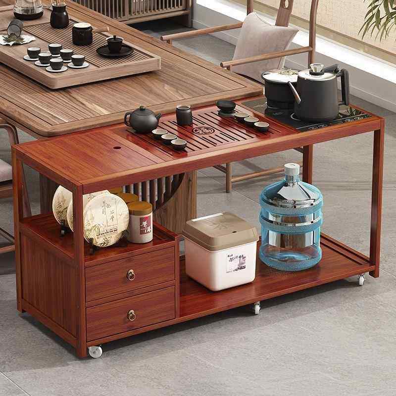 新中式茶水柜移动茶台茶桌家用阳台实木小茶车烧水壶一体沙发边几
