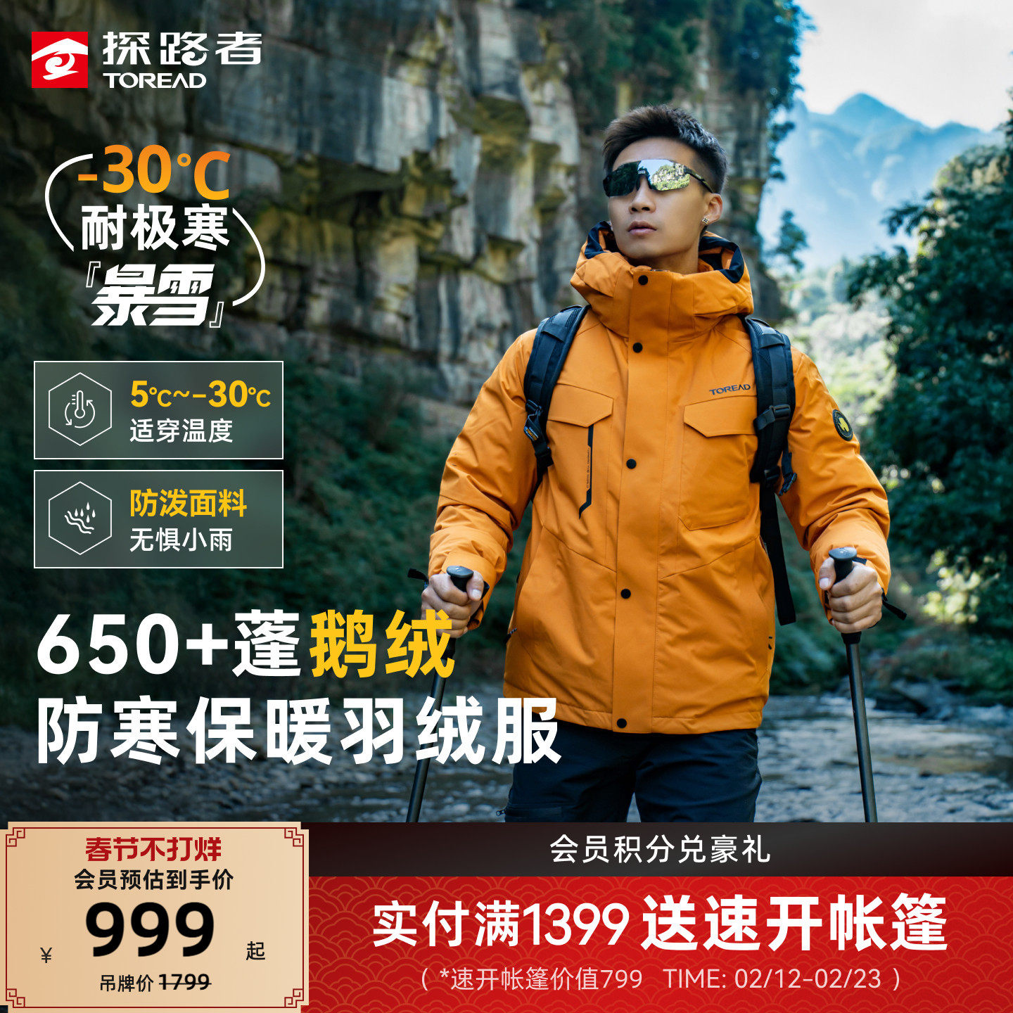 【鹅绒】暴雪探路者羽绒服男女冬季户外运动保暖防泼水防寒服外套
