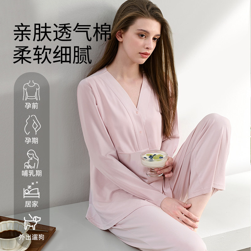 婧麒云慕丝月子服产后秋冬季纯哺乳家居服棉怀孕产妇孕妇睡衣套装