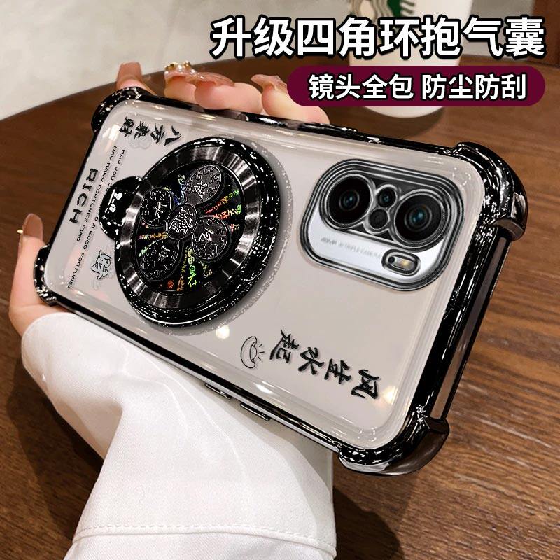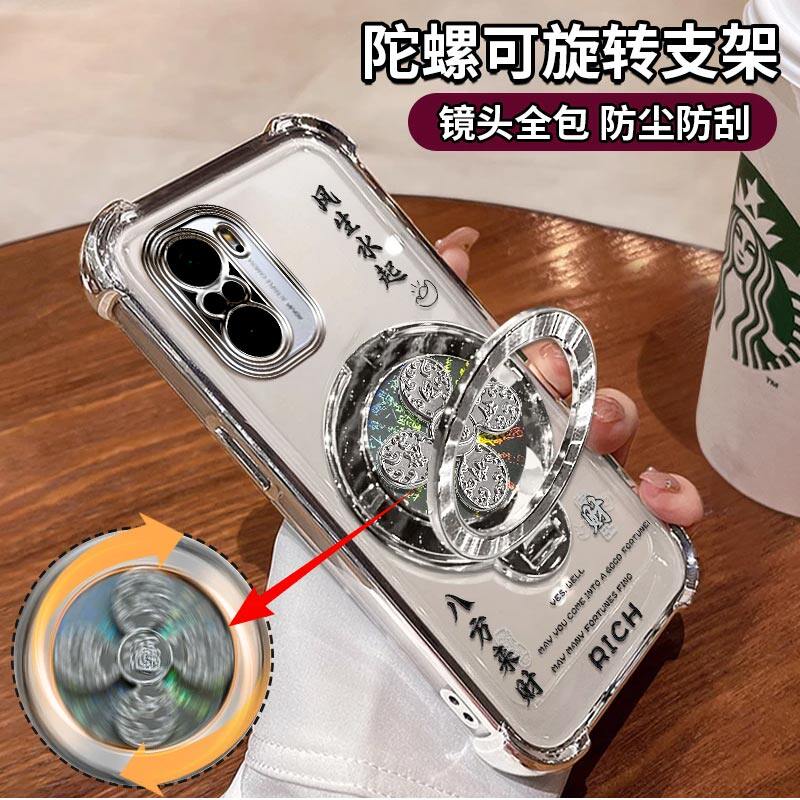 适用红米K40Pro手机壳风生水起电镀四角防摔RedmiK40高级感简约气囊红米k40pro解压陀螺支架新款保护套