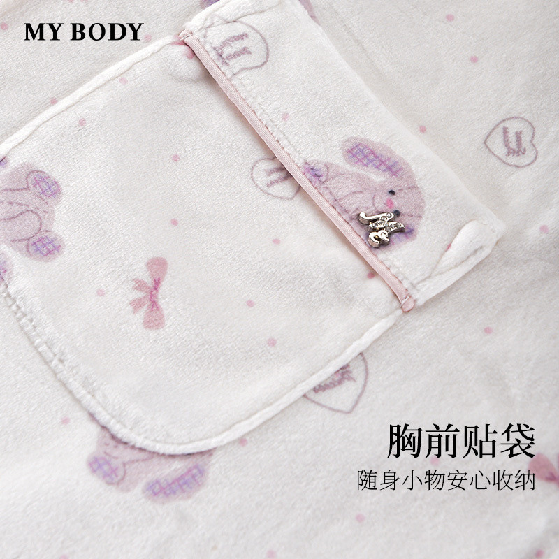 商场同款MYBODY冬季新款睡衣女款套装动物印花海岛绒可外穿家居服