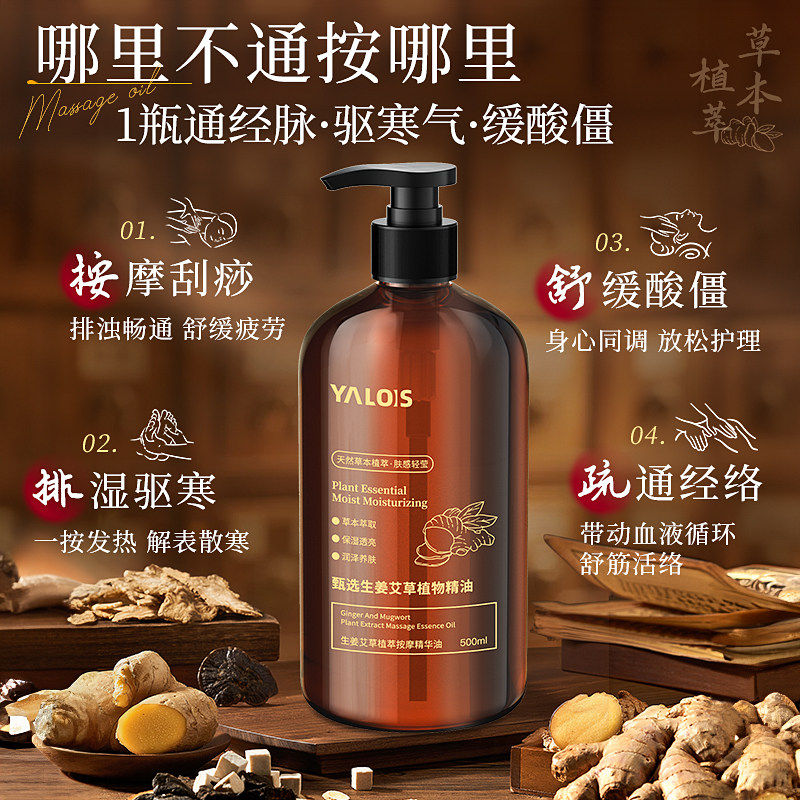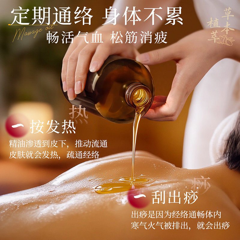 生姜艾草发热按摩精油全身身体通经络开背刮痧推拿正品美容院疏通
