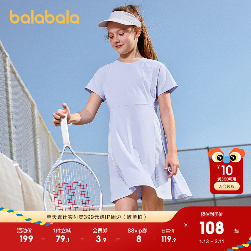 巴拉巴拉童装女童连衣裙2025新款夏装中大童运动风速干收腰裙子潮