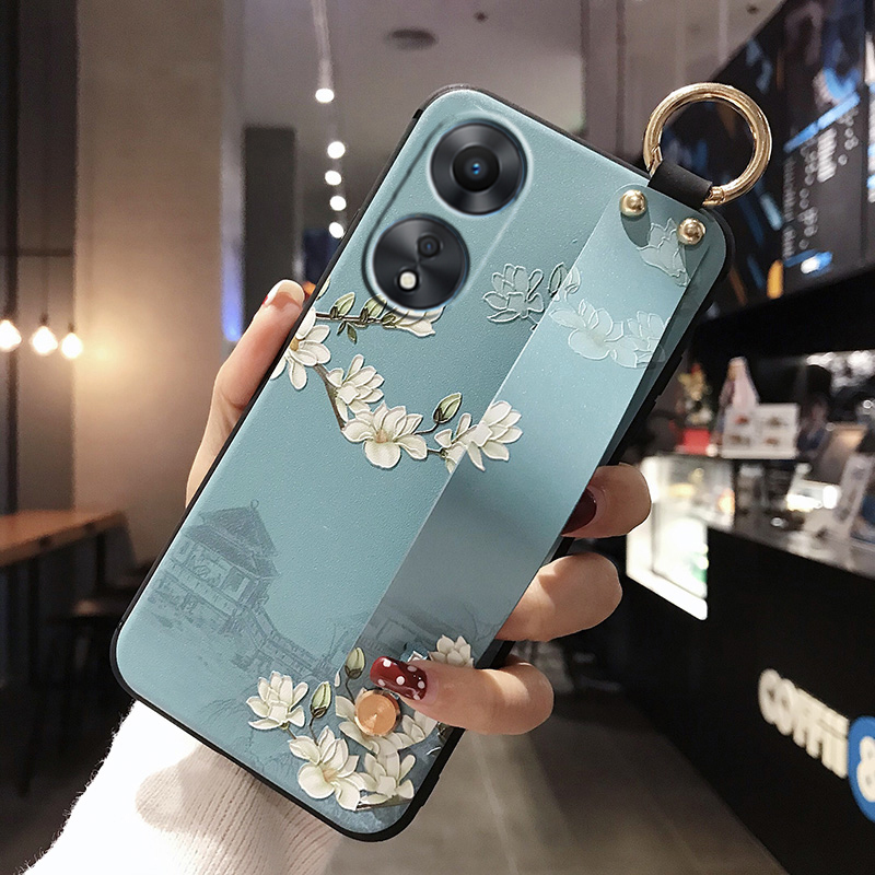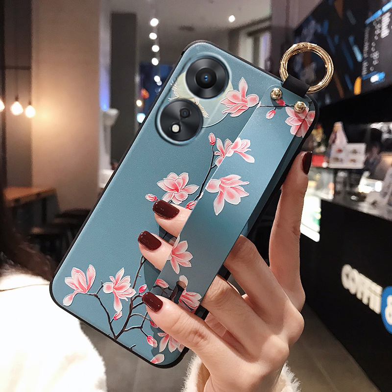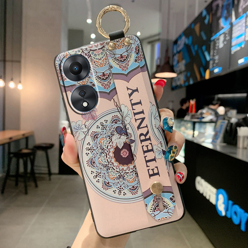 适用OPPOA78 5G手机壳A58卡通腕带RENO13F保护套RENO11F硅胶磨砂A1X浮雕A17全包边A98情侣女款RNEO14F防摔A77