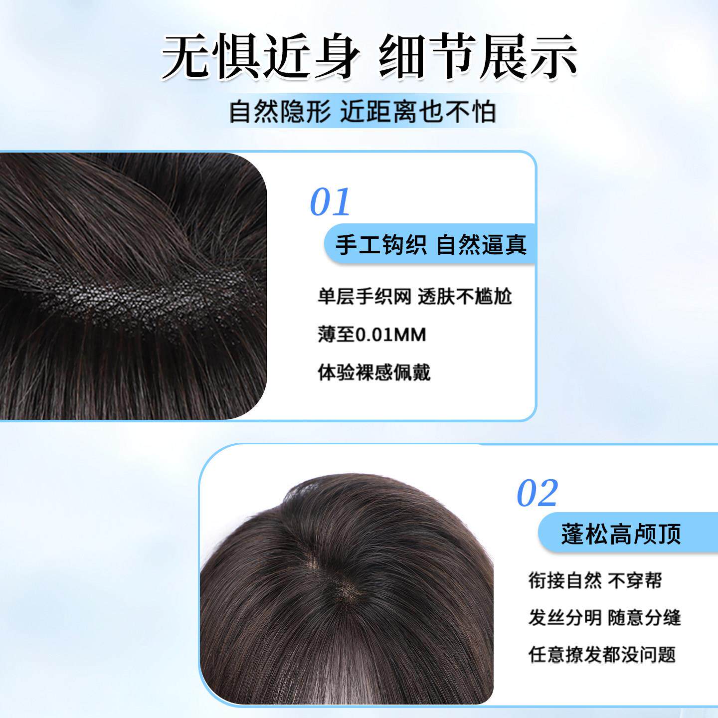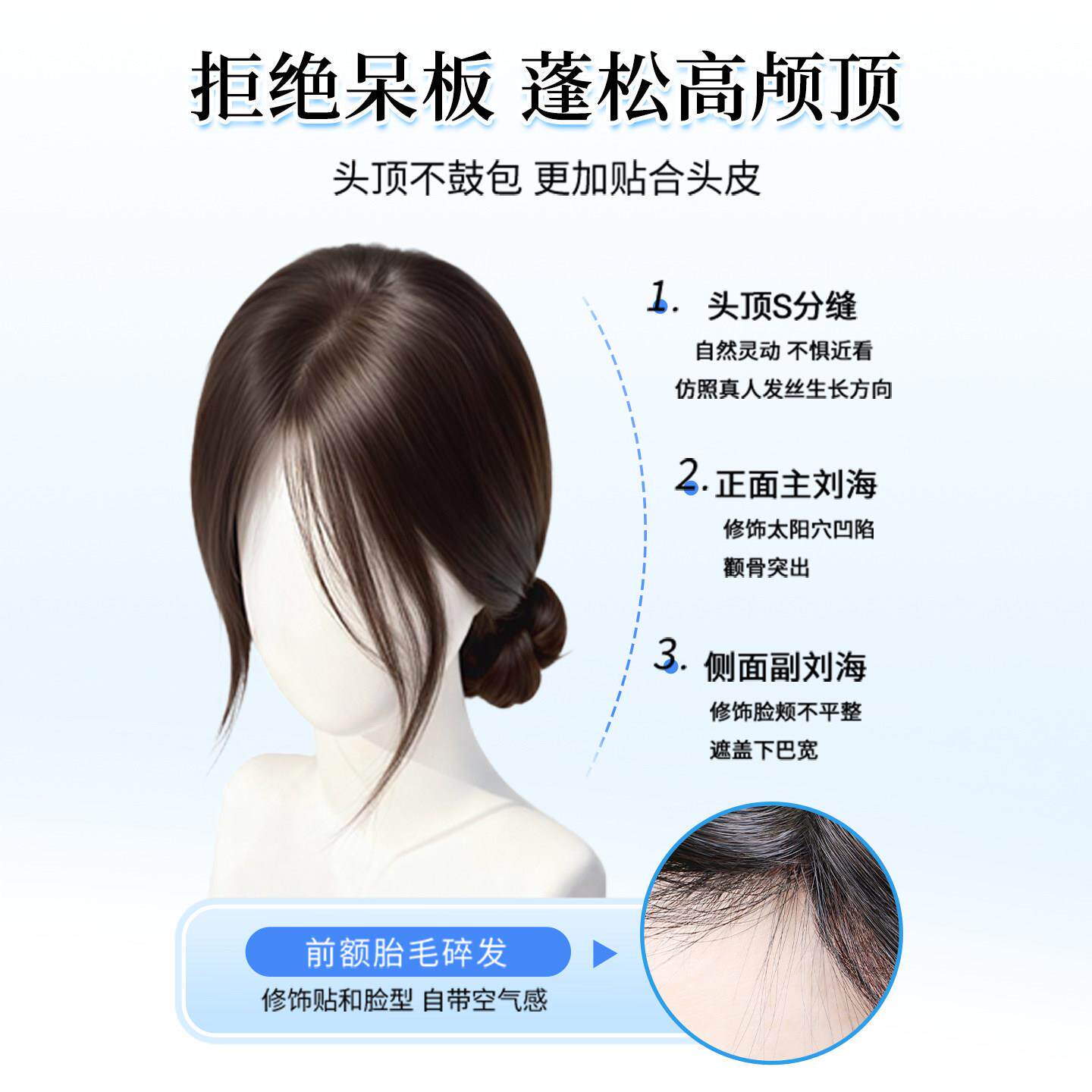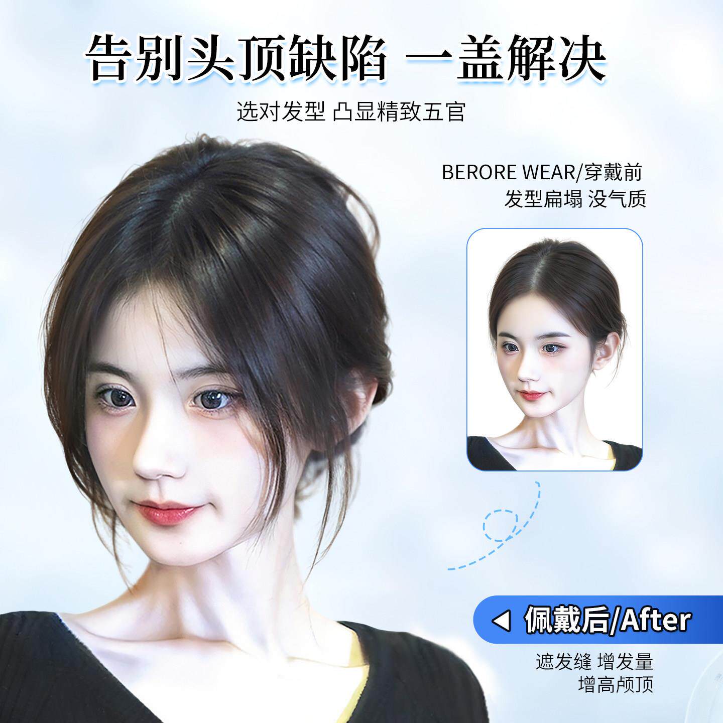 八字刘海假发女片头顶自然增发量蓬松高颅顶仿真发无痕轻薄假刘海