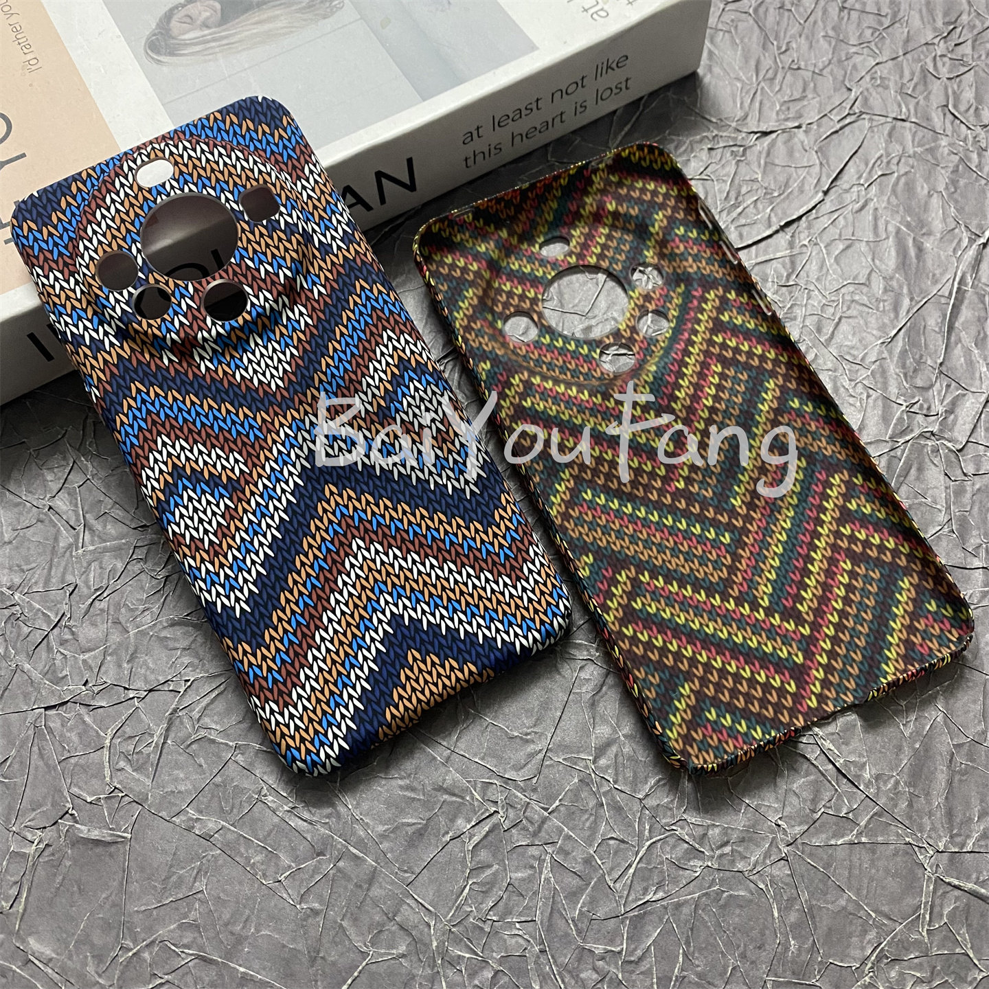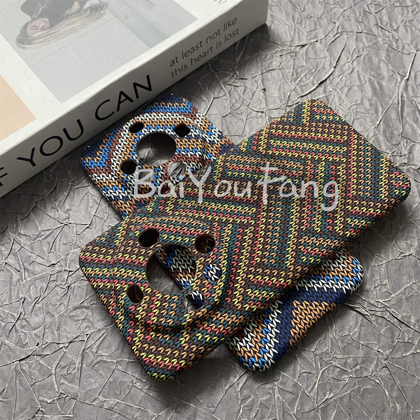 适用华为Mate60手机壳新款浮雕夜光碳纤维纹理mate60pro保护套波西米亚编织圣托里尼全包边框硬壳时尚潮流款