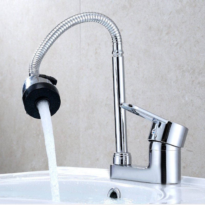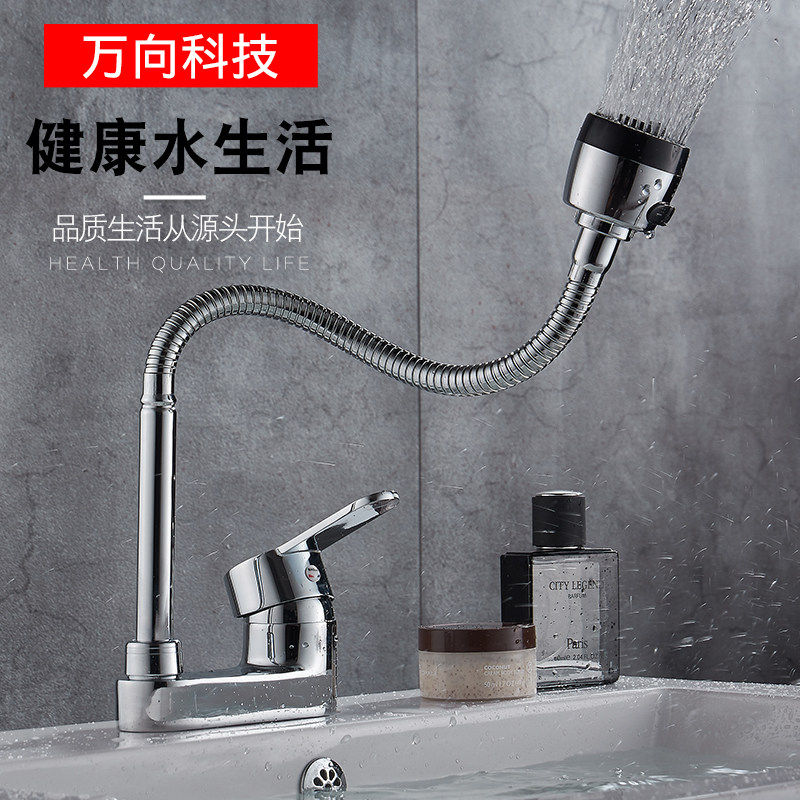 全铜面盆水龙头冷热陶瓷洗脸盆卫生间单把双孔三孔万向可旋转龙头