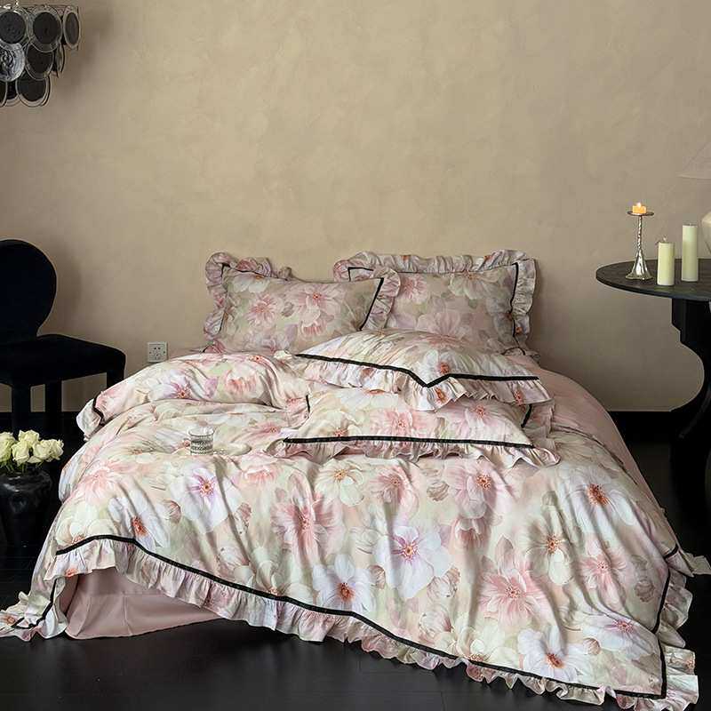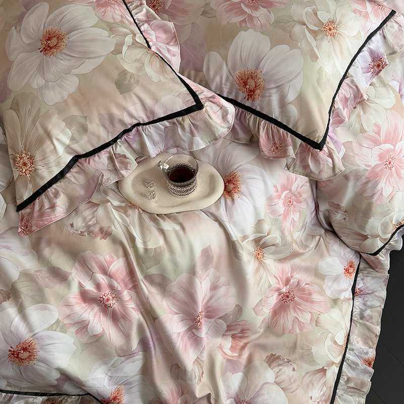 复古花卉100支全棉纯棉四件套数码印花轻奢被套床单床上用品1.8m