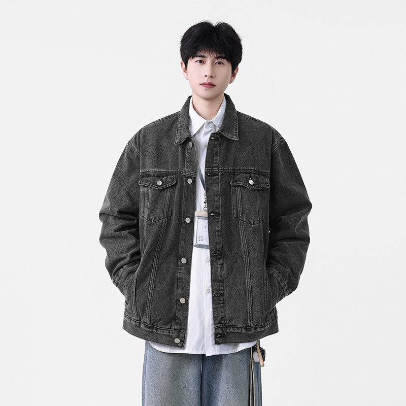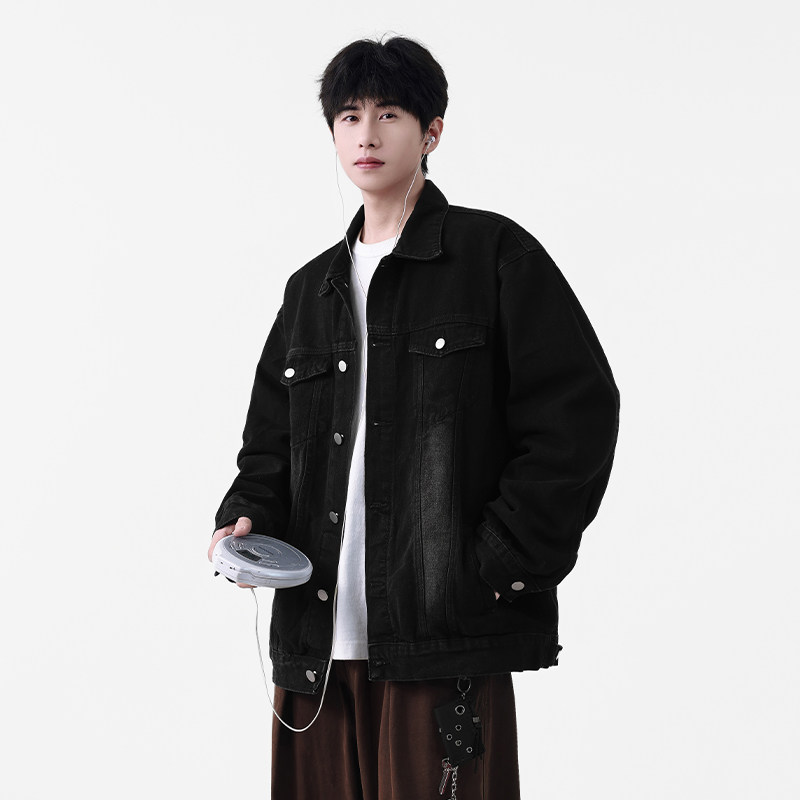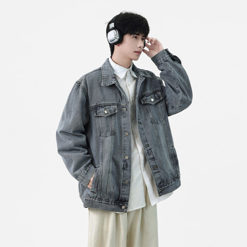 Wassup Shark美式牛仔外套男春秋季复古工装休闲夹克百搭翻领上衣