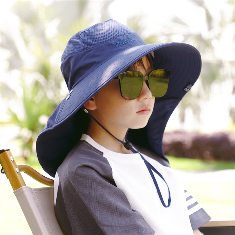 儿童防晒帽宝宝遮阳帽防紫外线男孩女童太阳帽大帽檐夏季渔夫帽子