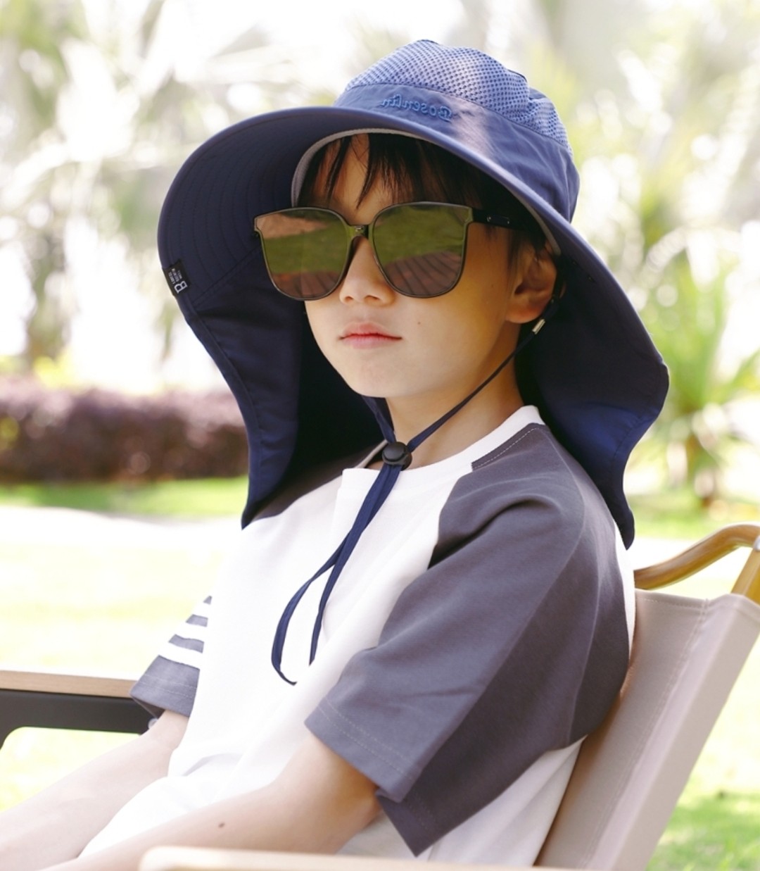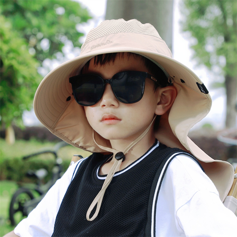 UPF50+防晒帽子男女亲子青少年披肩护颈脖夏季渔夫帽户外遮阳面罩