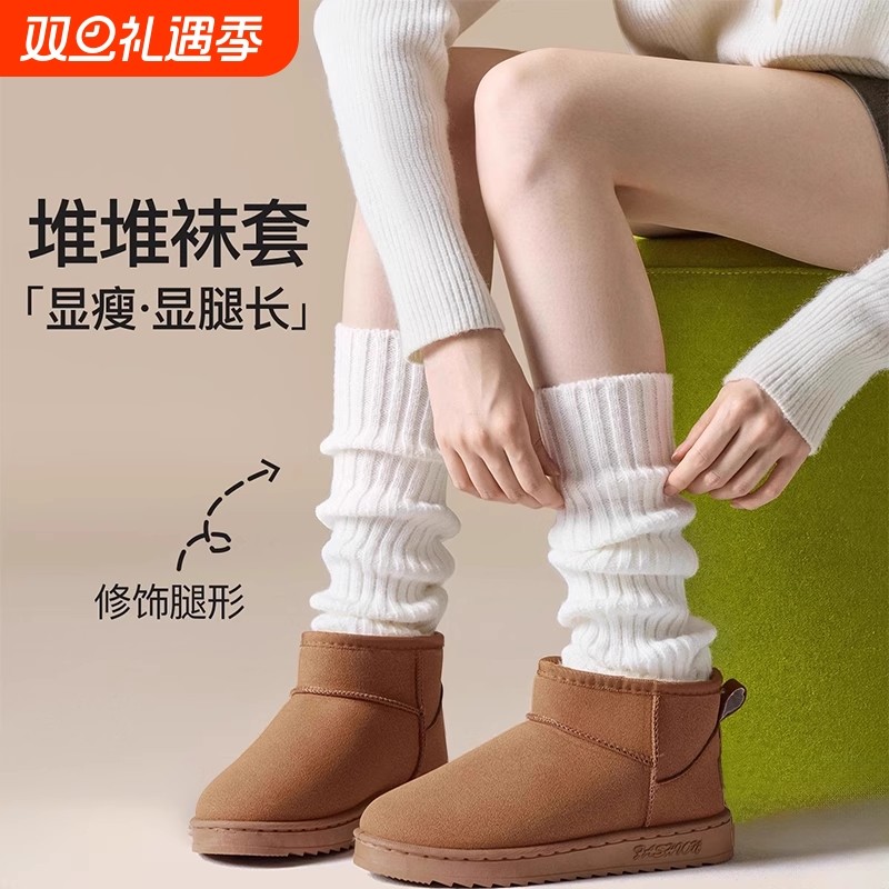 堆堆袜套白色袜子女秋冬款辣妹小腿袜雪地靴腿套保暖加厚长袜灰色