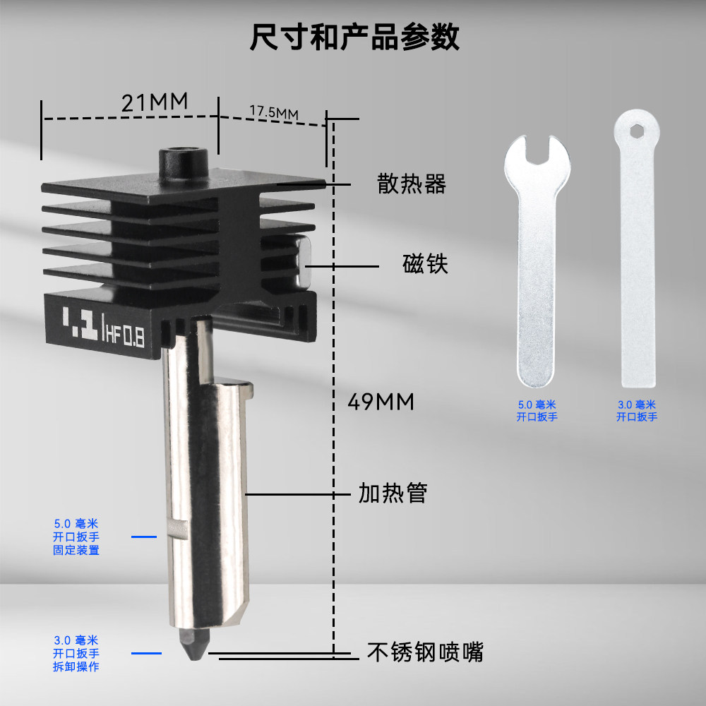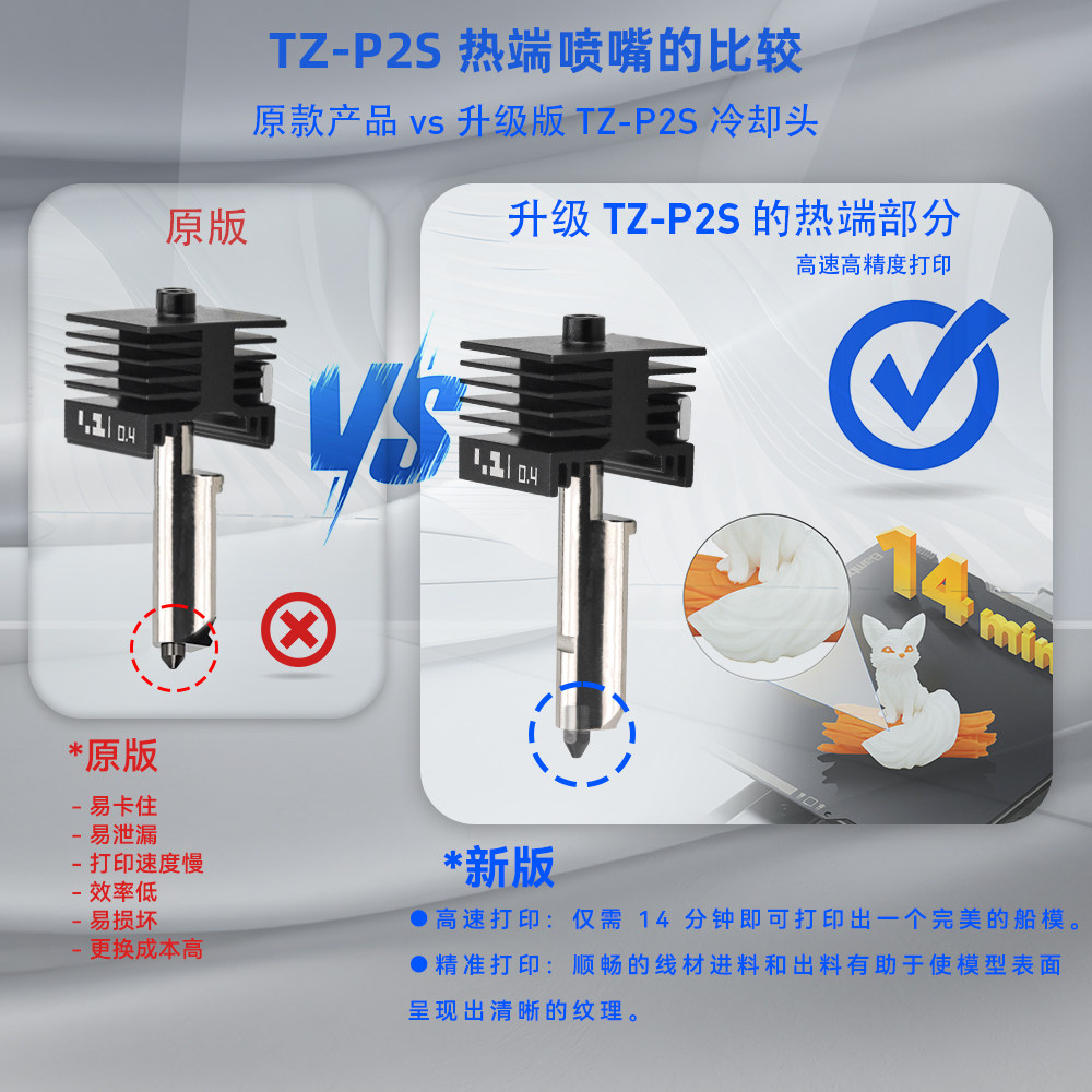华塑拓竹P2S热端套件可拆卸硬化钢喷嘴标准高流量HF打印头3D配件