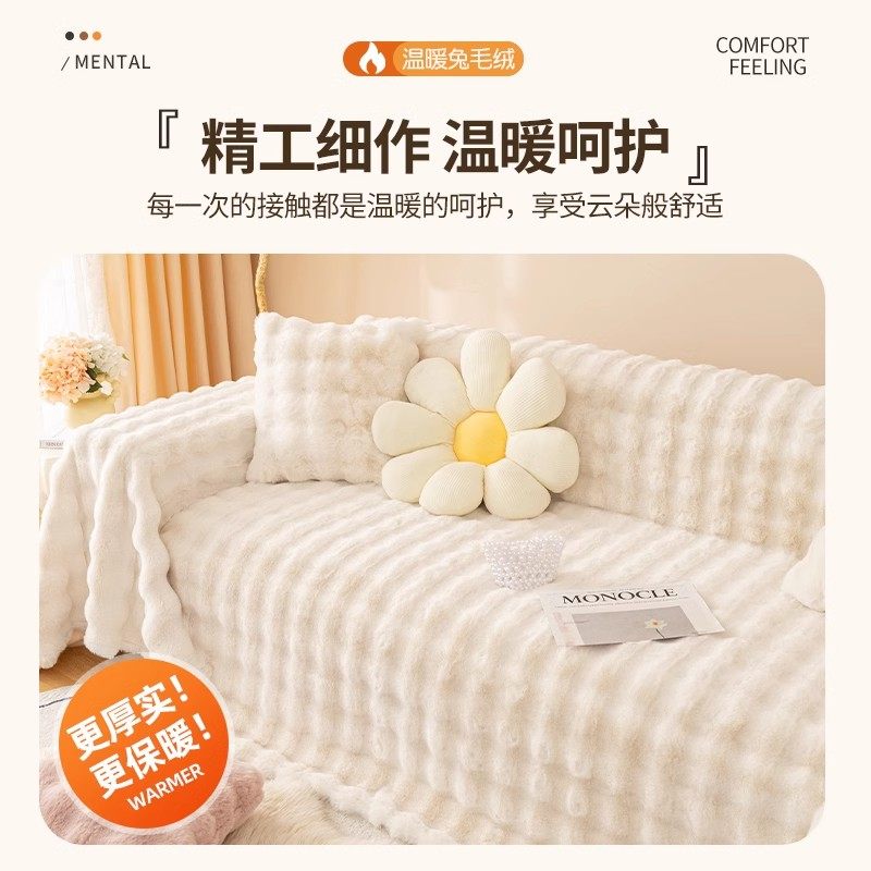 奶油风兔兔绒沙发盖布巾冬季加厚毛绒沙发套罩全包万能全盖毯客厅