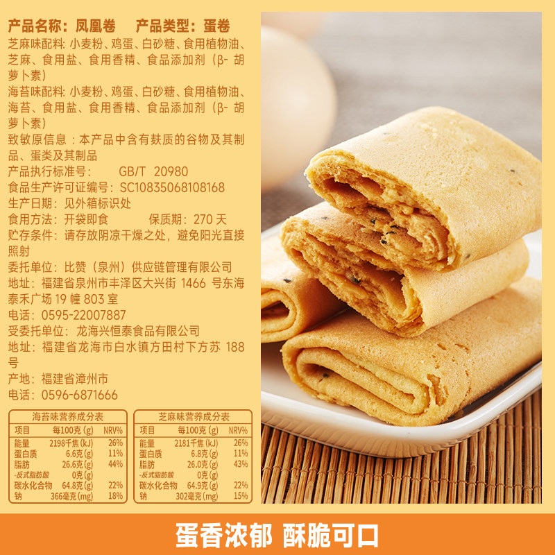 比比赞凤凰卷鸡蛋卷夹心饼干整箱办公室零食品小吃休闲散装多口味